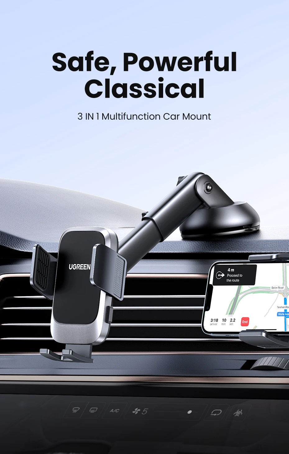 【New-in Sale】UGREEN Car Phone Holder Air Vent & Gravity Dashboard 3 in 1 Car Phone Stand For iPhone 16 15 14 Pro Xiaomi Samsung