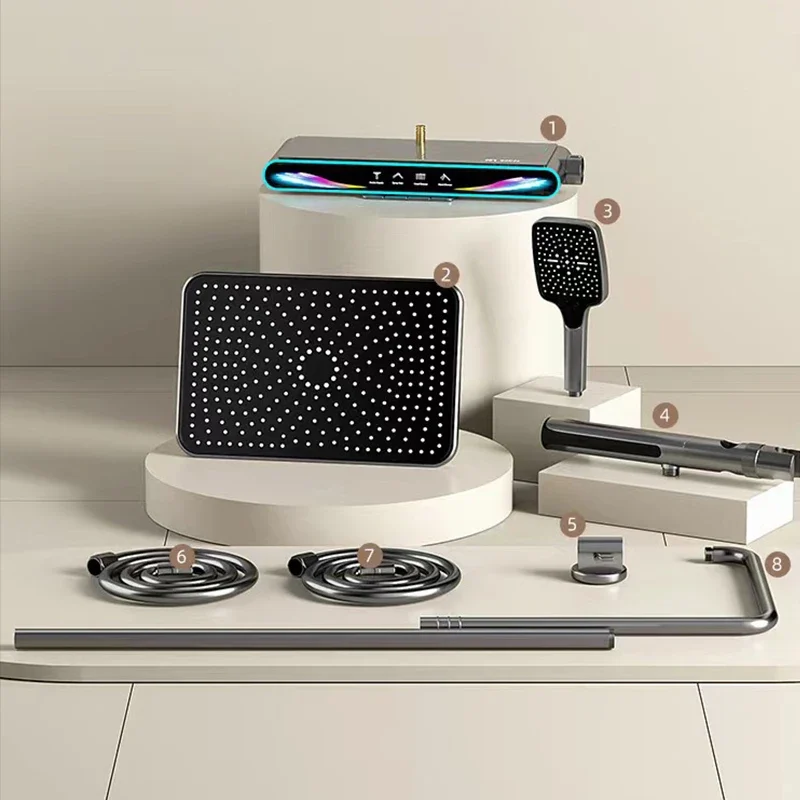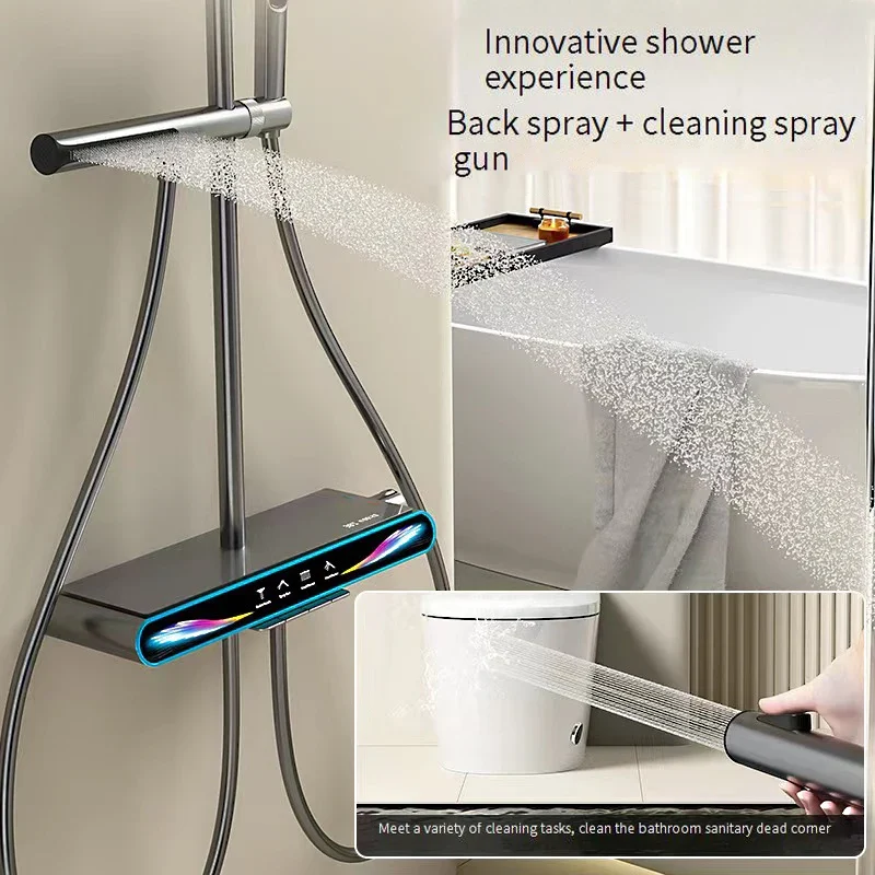 الذكية شاشة ديجيتال دش مجموعة الحمام الأمطار الساخن الباردة نظام الاستحمام مجموعة دش صنبور مجموعة كاملة الداعم حمام فوهة