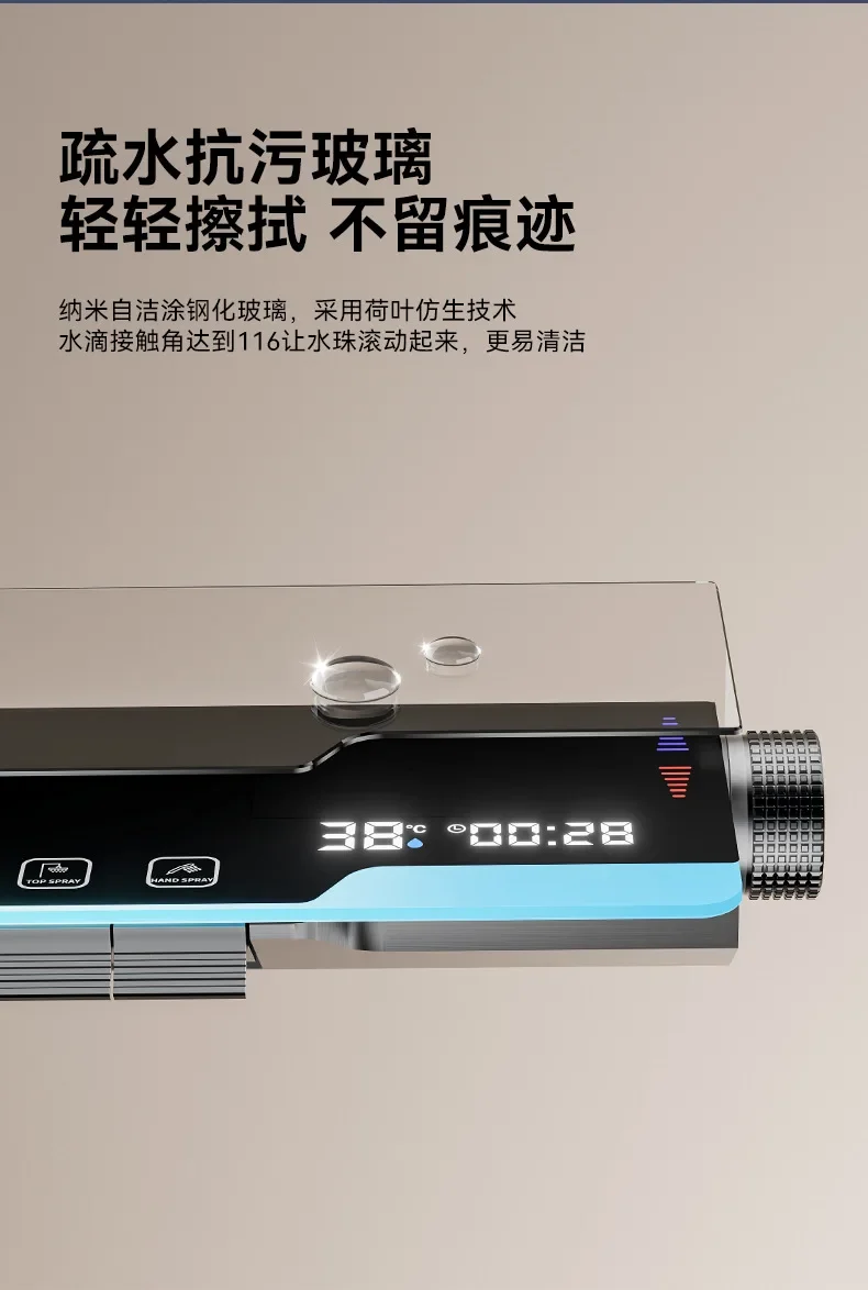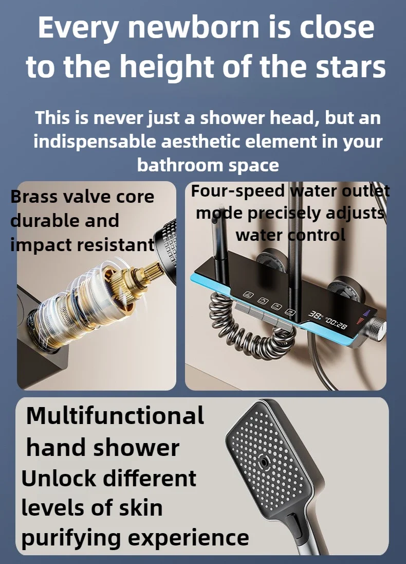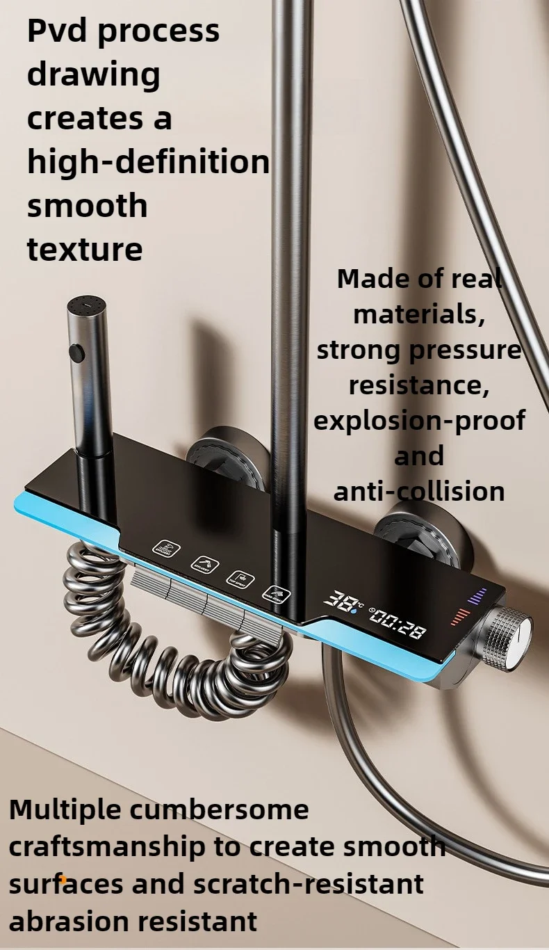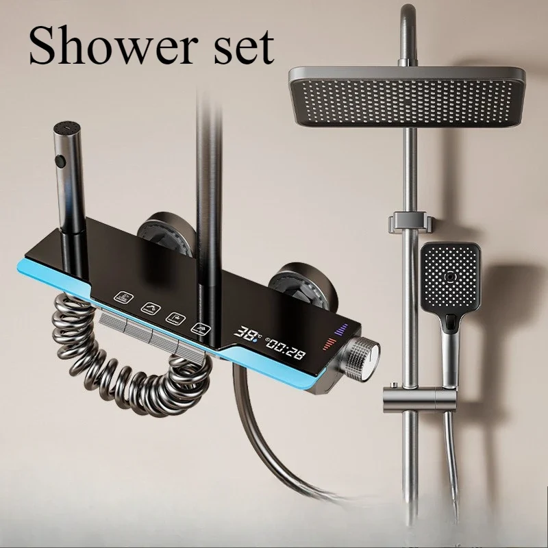 مجموعة دش ترموستاتي مع إضاءة محيطة ، شاشة رقمية ذكية ، مفاتيح بيانو فاخرة ، معزز نحاسي ، حمام
