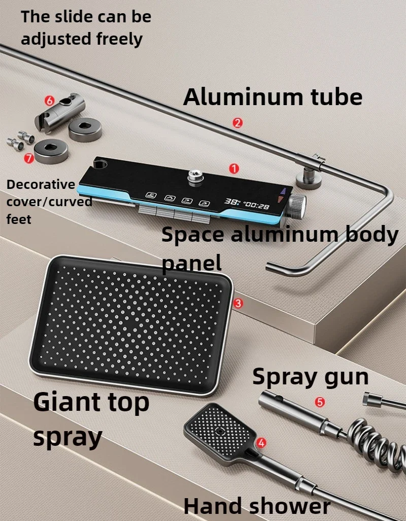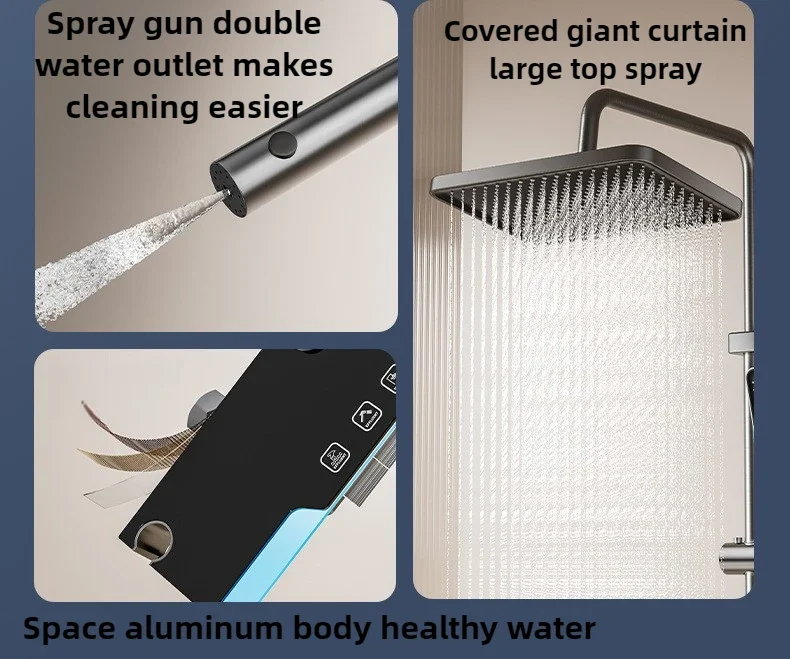 الحمام الذكية شاشة ديجيتال نظام دش عباد الشمس رمادي الحائط أربعة وظائف منفذ المياه مجموعة صنبور دش الأمطار