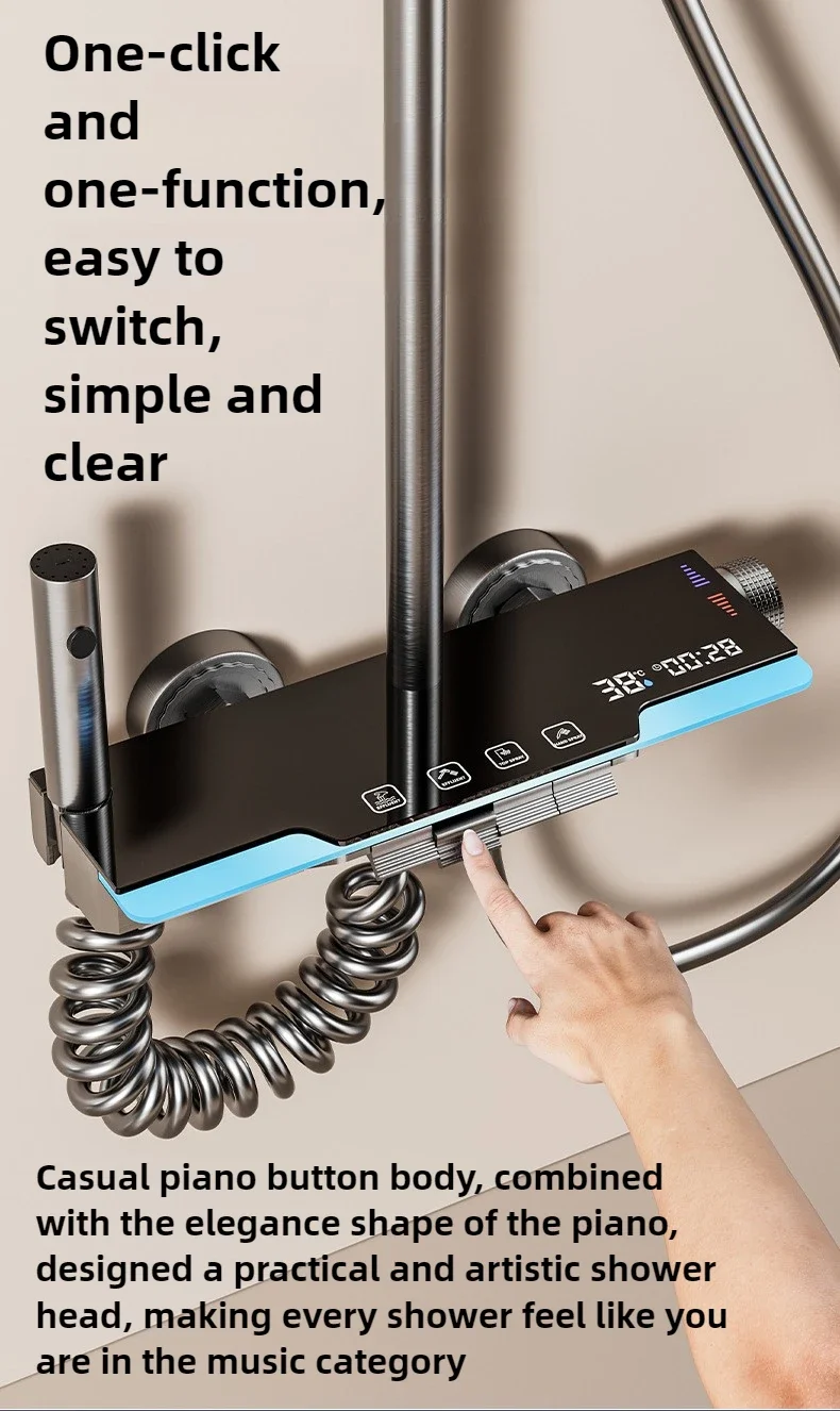 2025 تصميم جديد نظام دش الحمام مجموعة مفاتيح البيانو LED صنبور دش رقمي حمام خلاط ساخن وبارد دش الحنفية مجموعة