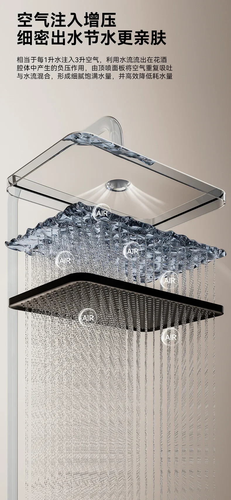 Spray, bubble, LED light, automatic water supply, rain shower