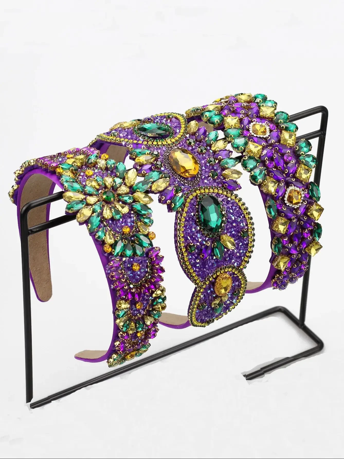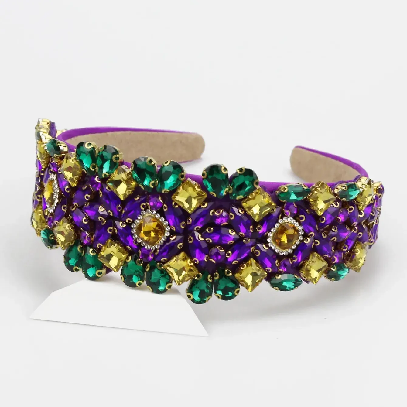 النساء الفاخرة الأخضر الأرجواني كريستال الباروك رباطات لامعة حجر الراين واسعة العصابات الشعر لإكسسوارات الشعر المسابقة