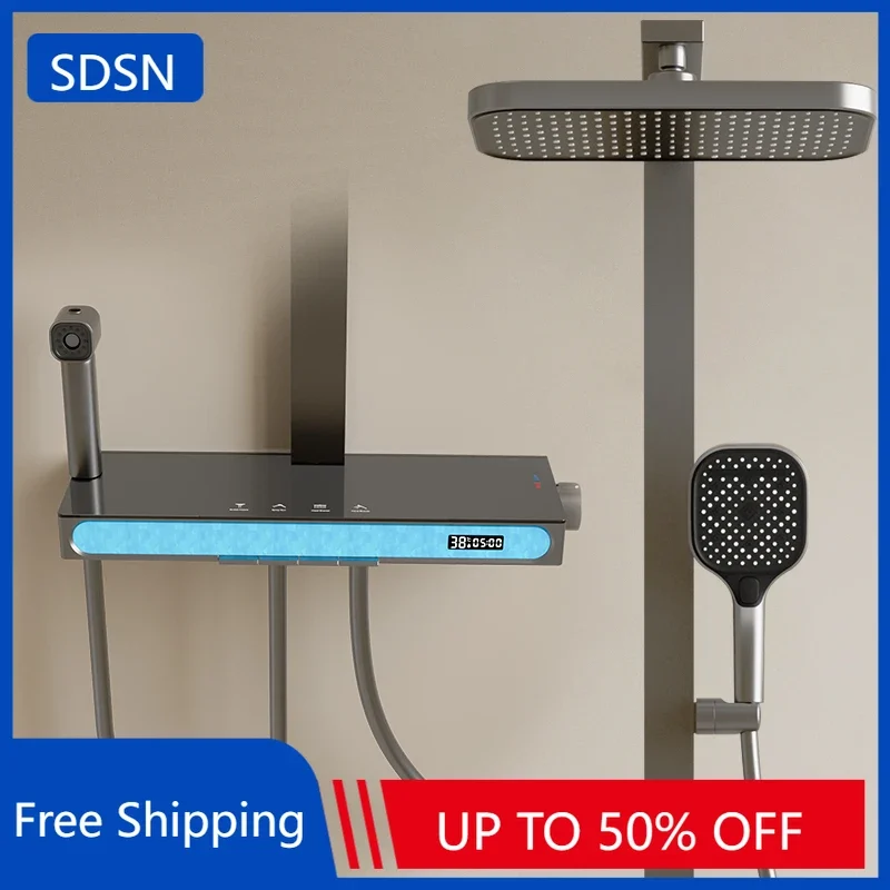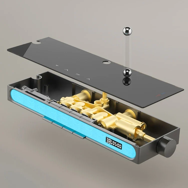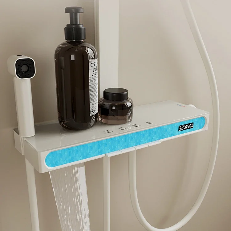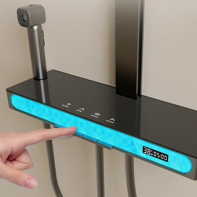 بلوتوث الموسيقى الرقمية نظام دش الحمام الإضاءة المحيطة ثرموستاتي الحمام الرقمي دش مجموعة الحنفيات الملحقات
