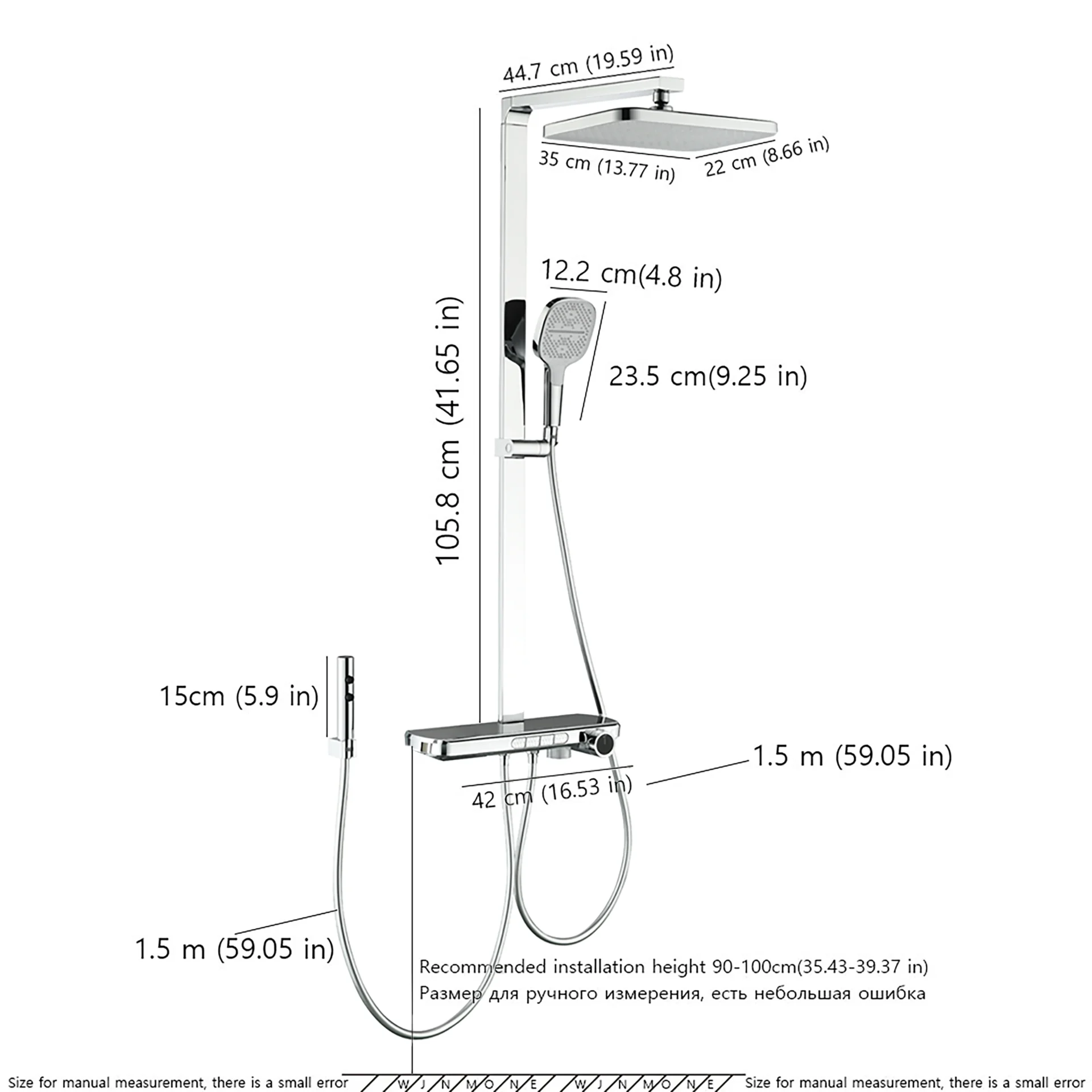 - شكل الدش: شكل قضيب