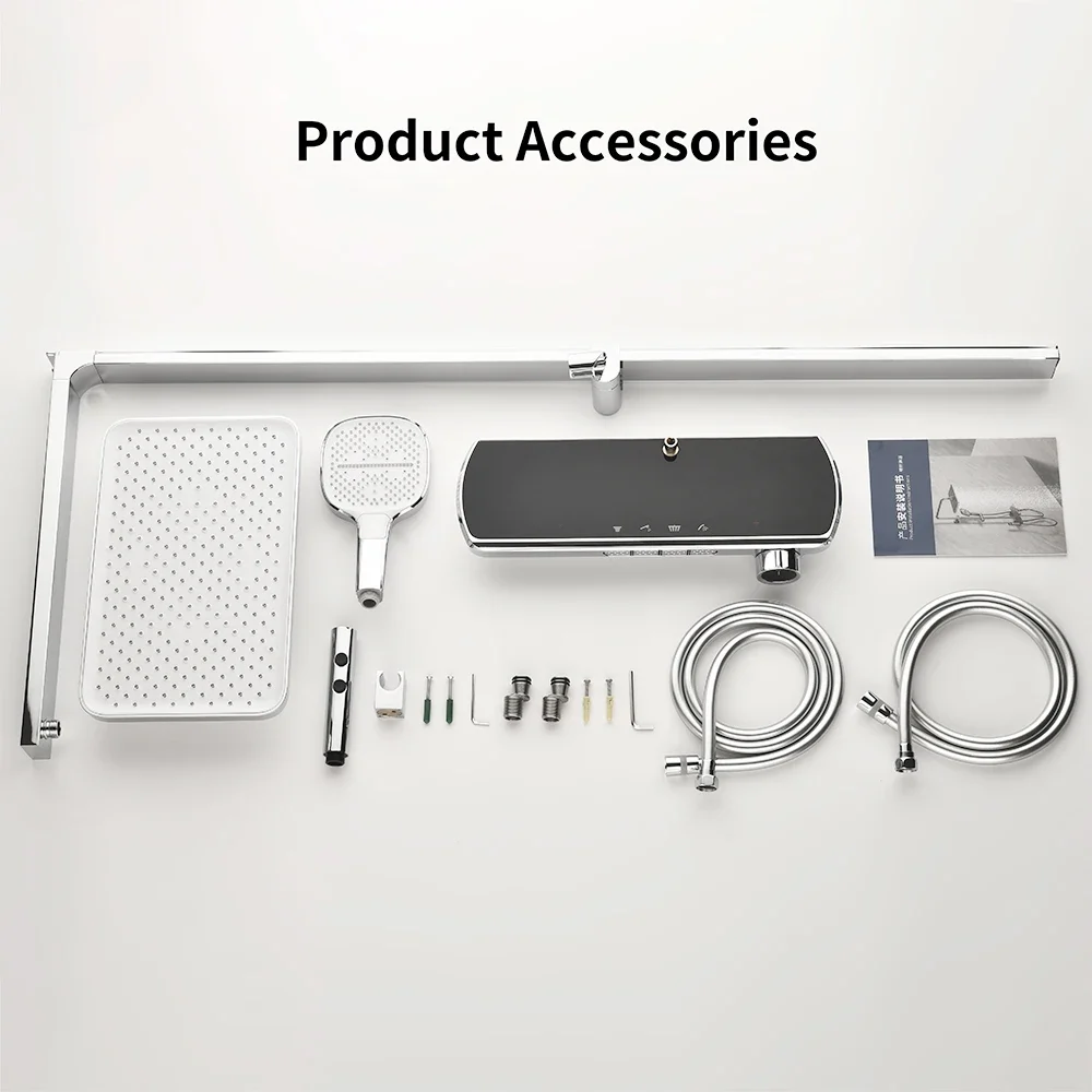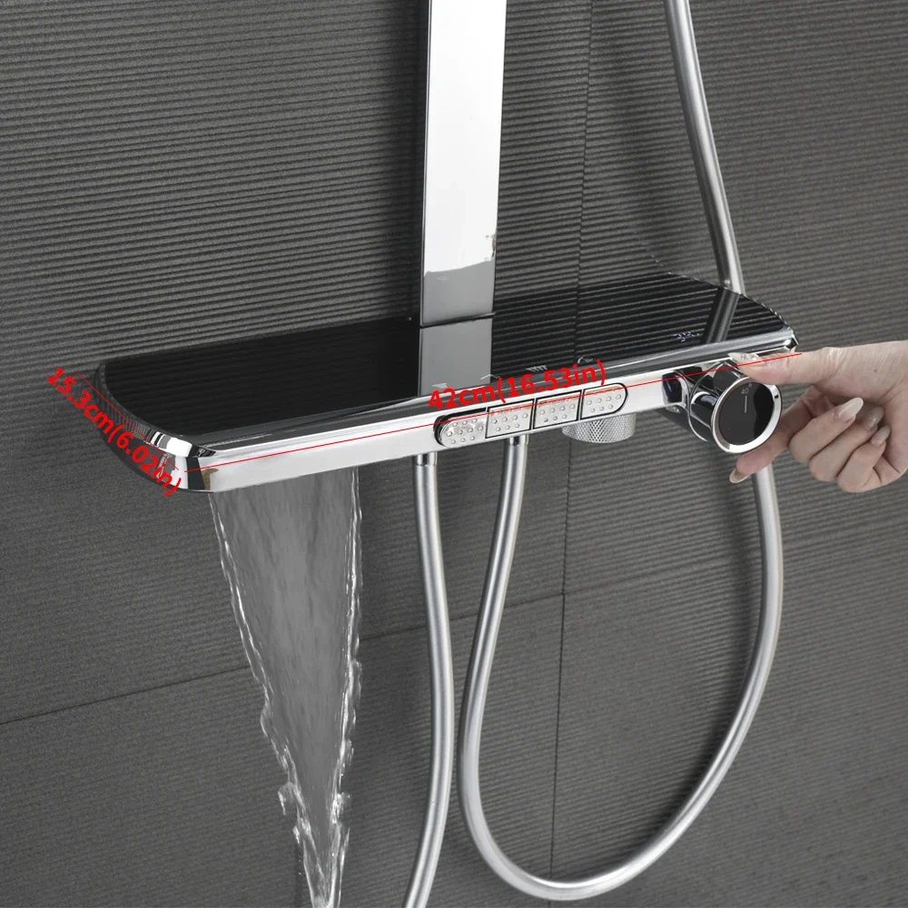حمام فاخر نظام دش شلال عرض درجة الحرارة الرقمية حوض الاستحمام مجموعة دش خلاط مياه الأمطار الساخنة والباردة صنبور دش حنفية دش حمام ذكية بأزرار 4 طرق مجموعة كاملة من ملحقات الحمام