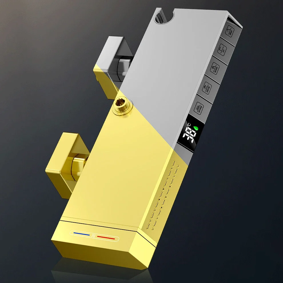 - تصميم أنيق وعصري: يتميز هذا الصنبور الذهبي المصقول بنمط معاصر سيرفع من جمالية أي حمام، مما يجعله مثاليًا للفيلات والمنازل الراقية.يضمن تصميمه الحديث مظهرًا أنيقًا ومتطورًا يكمل أي ديكور.