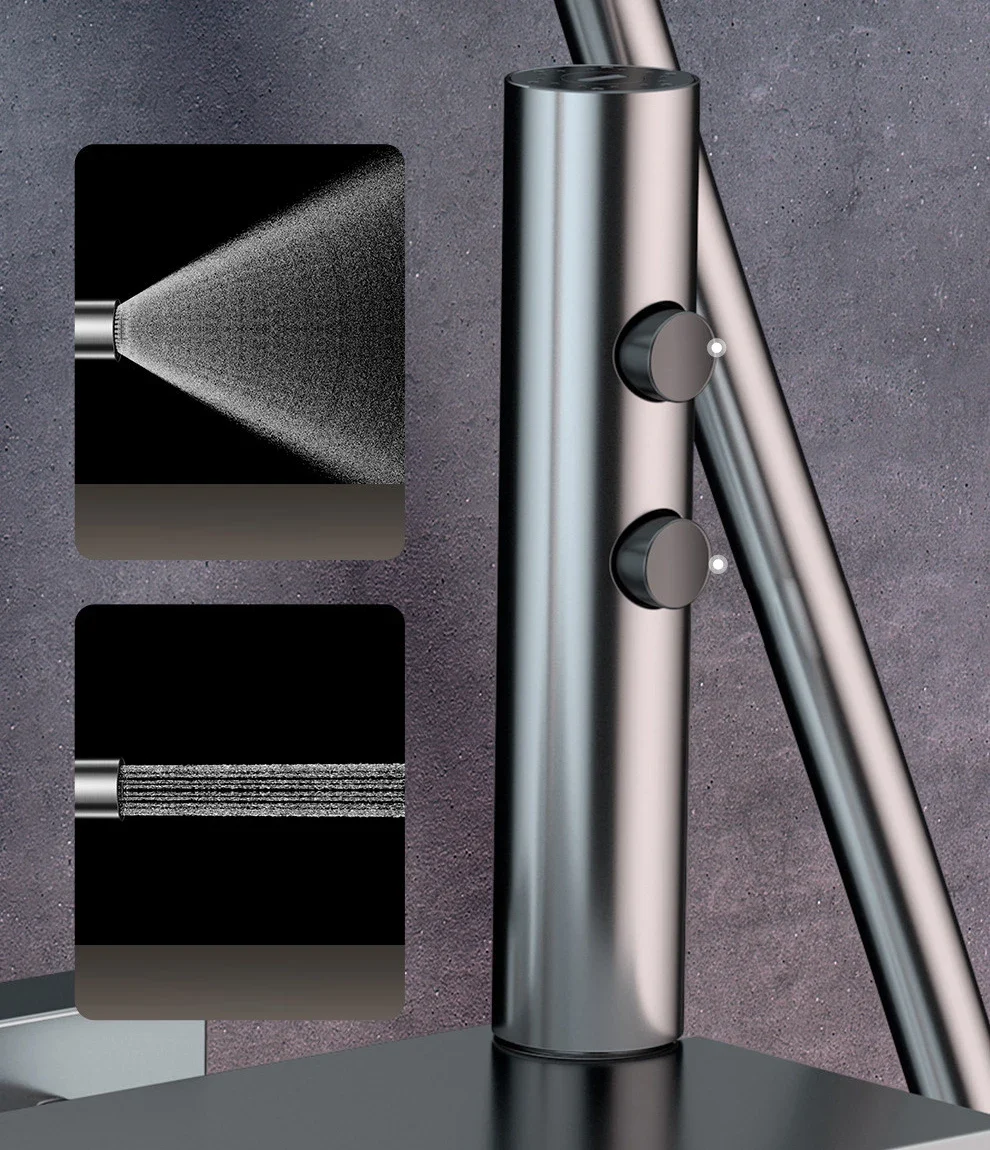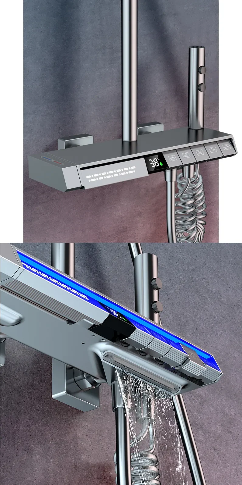 - تجربة استحمام متعددة الوظائف: مع صنبور ثرموستاتي وأنماط رش متعددة (المطر والنفاث والتدليك)، يوفر نظام الدش هذا تجربة استحمام لا مثيل لها، مما يسمح للمستخدمين بتخصيص درجة حرارة الماء والضغط حسب رغبتهم.