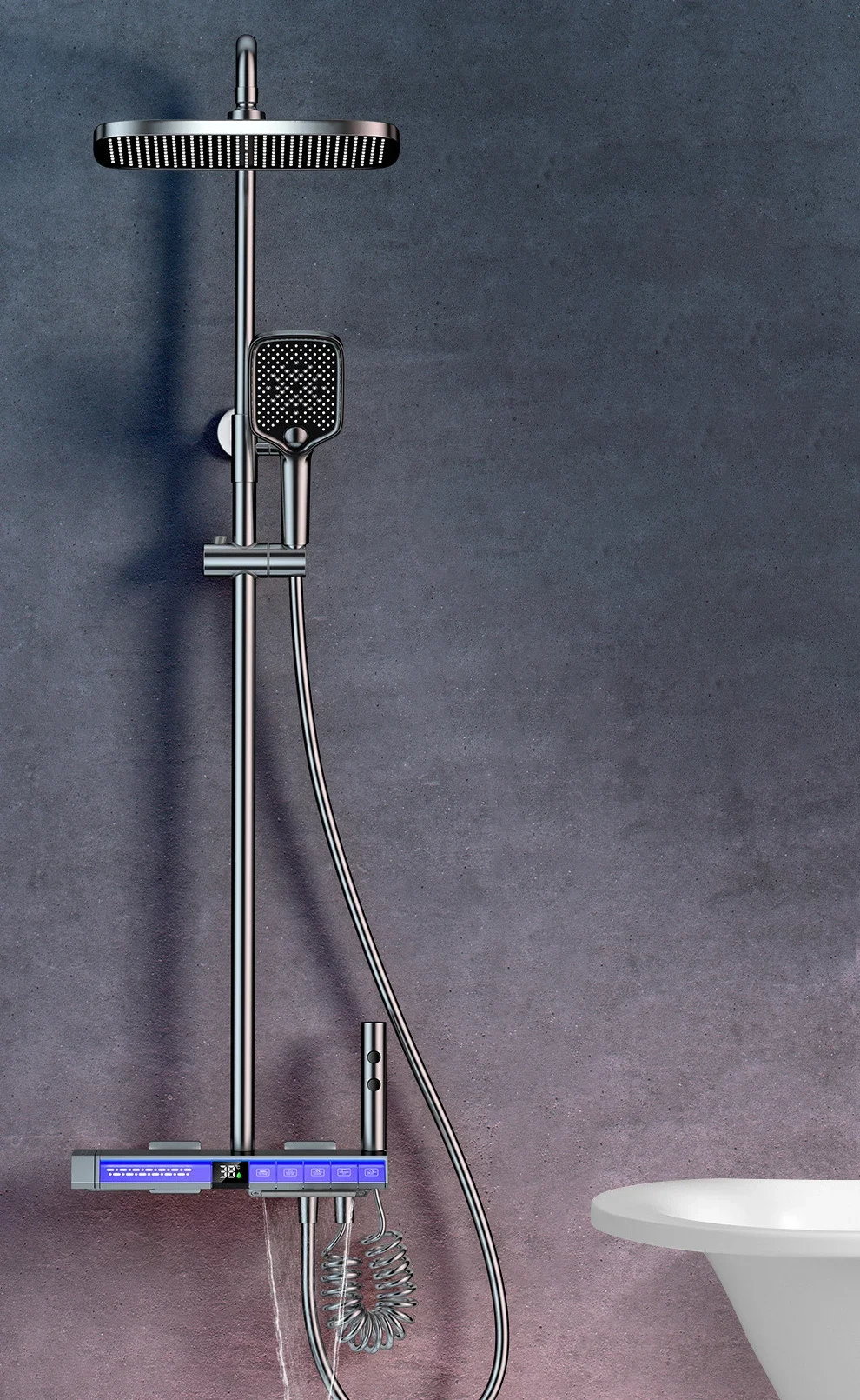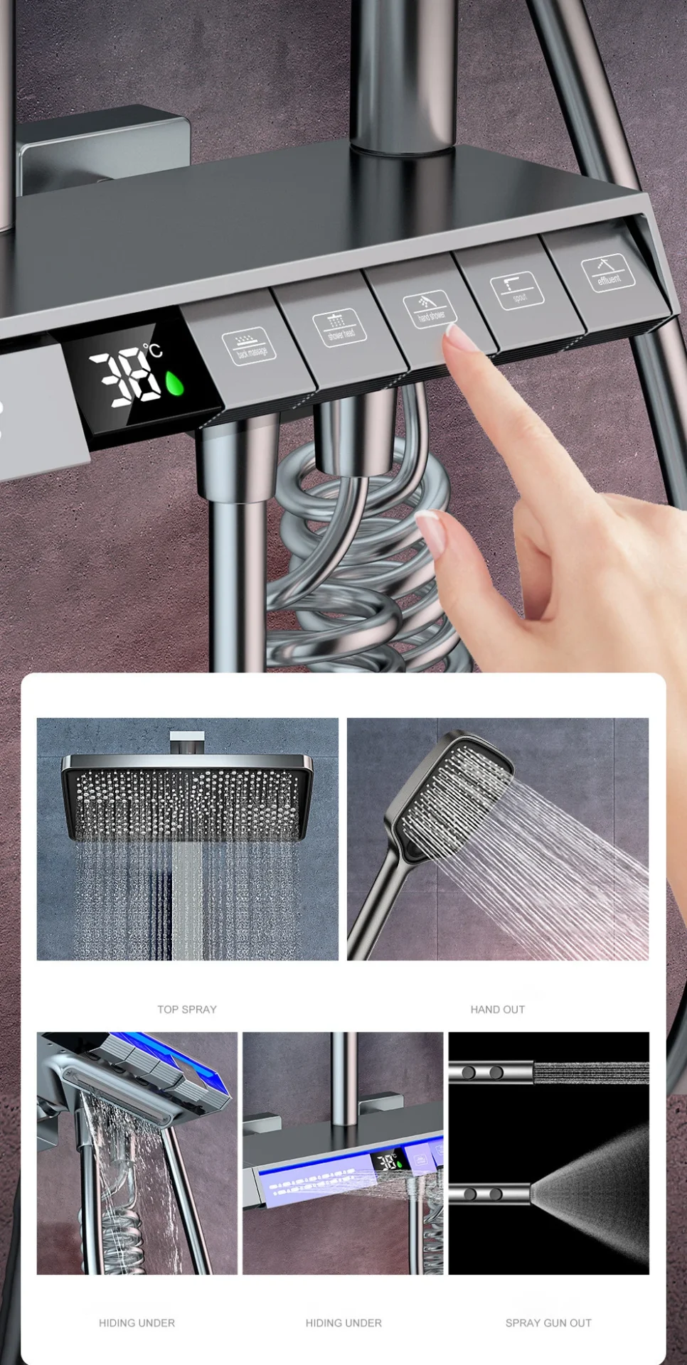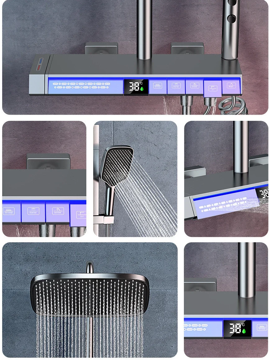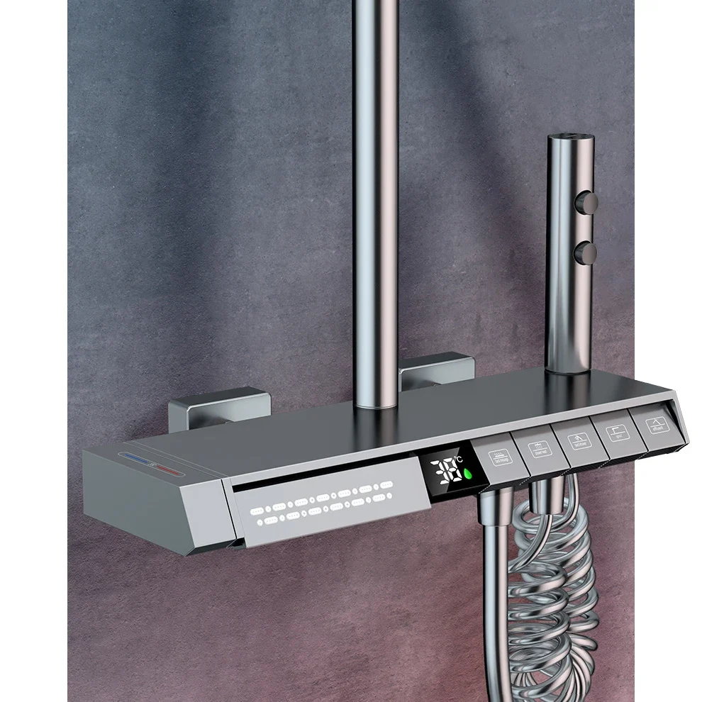 مجموعة دش الحمام الرقمية سبا الخصر رذاذ ثرموستاتي شاشة ديجيتال البيانو نظام دش الحمام الحنفيات رأس دش المطر