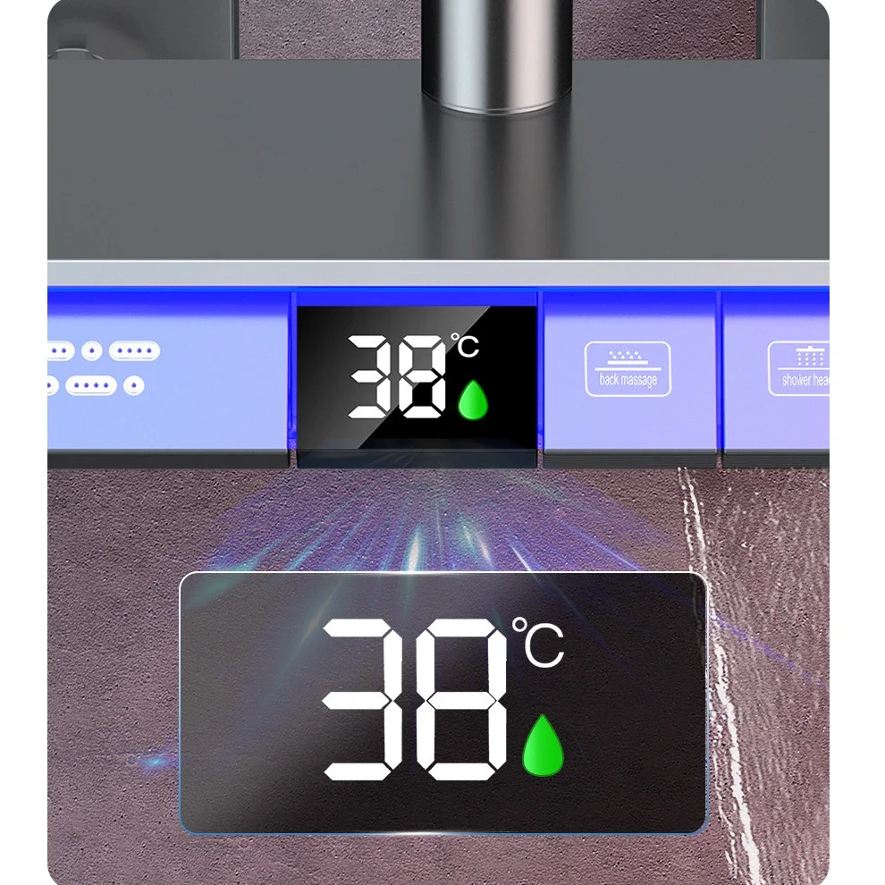You're watching:مجموعة دش الحمام الرقمية سبا الخصر رذاذ ثرموستاتي شاشة ديجيتال البيانو نظام دش الحمام الحنفيات رأس دش المطر