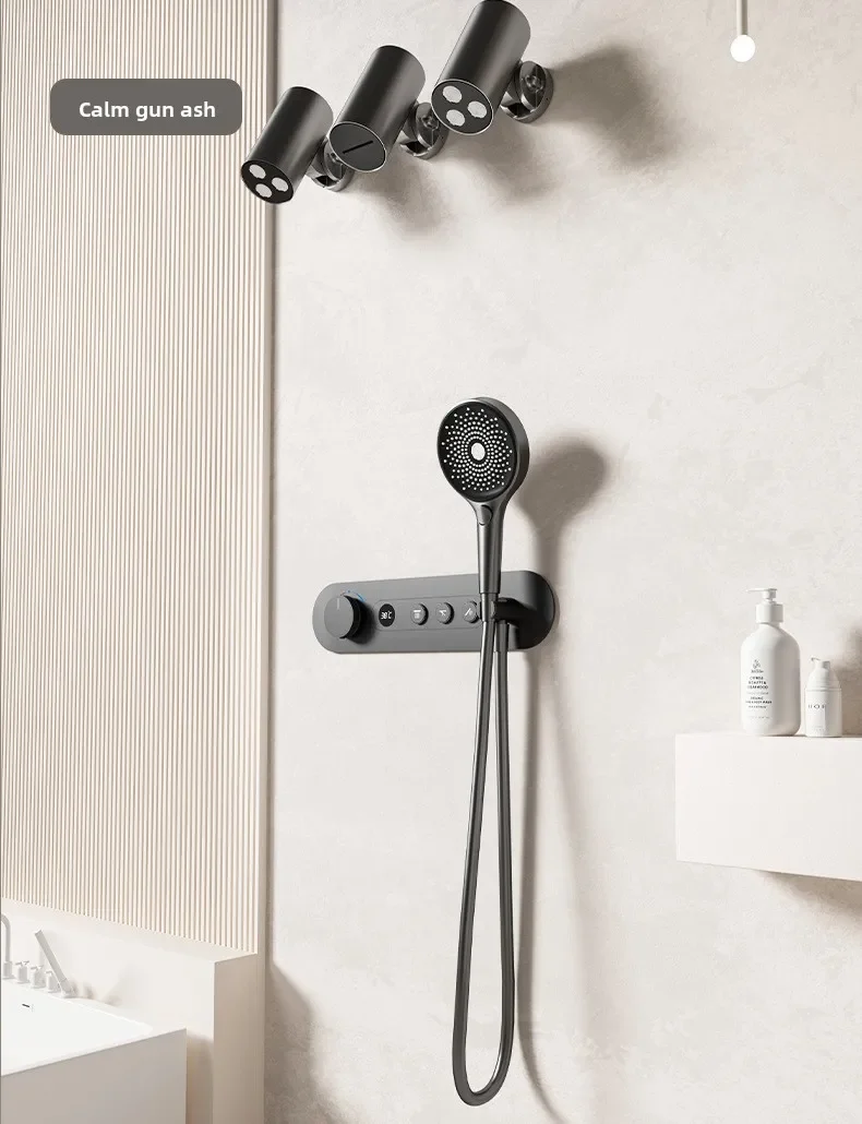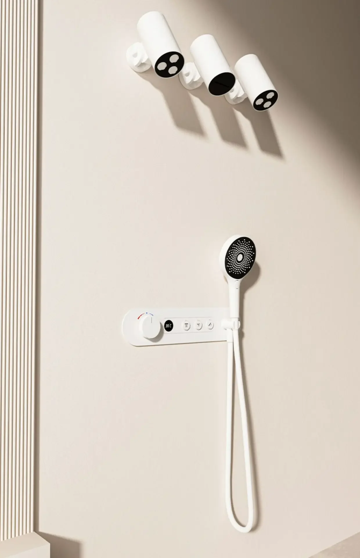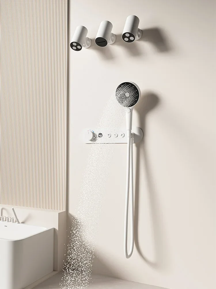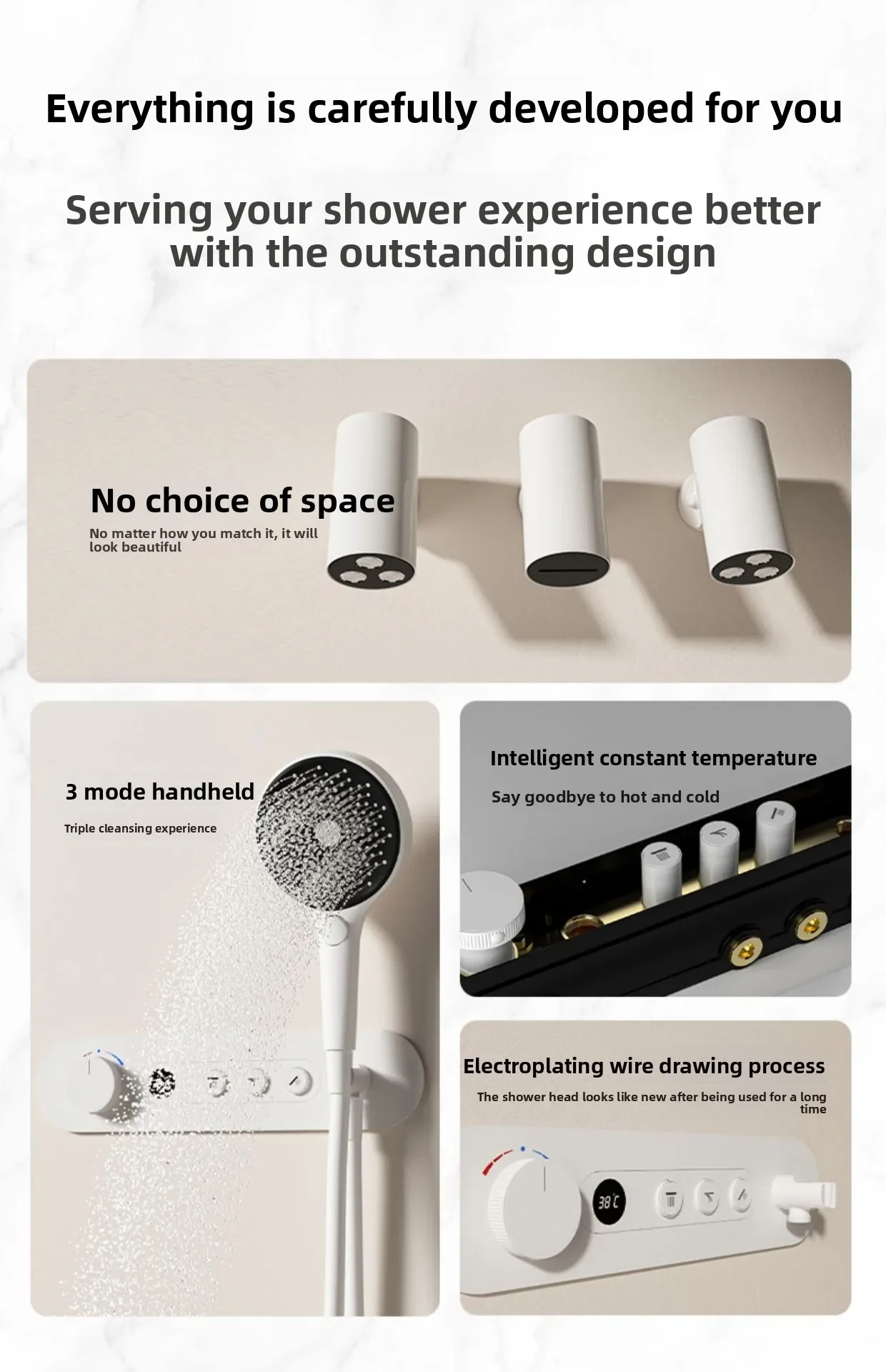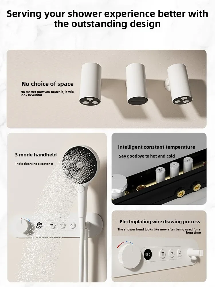 مجموعة دش هطول الأمطار باللون الأبيض مع ترموستات شاشة رقمية ذكية للحمام المنزلي
