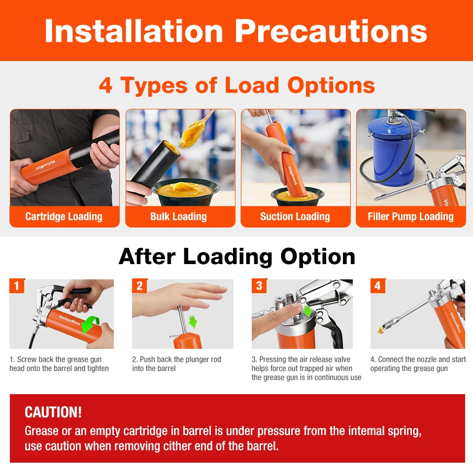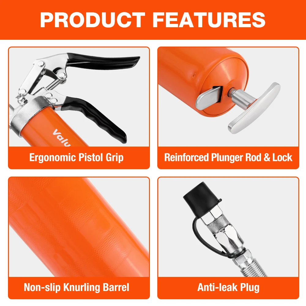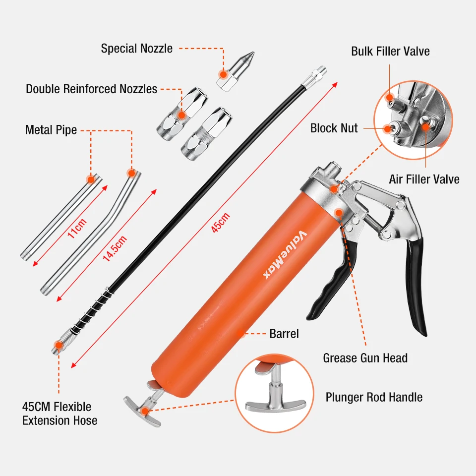 مسدس شحم بمقبض ومجموعة خرطوم مرن بقوة 6000 PSI لتزييت السيارات والشاحنات