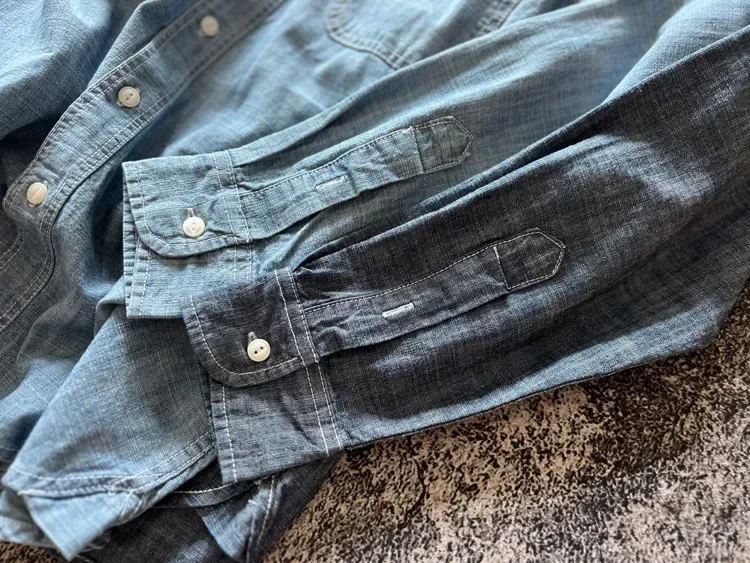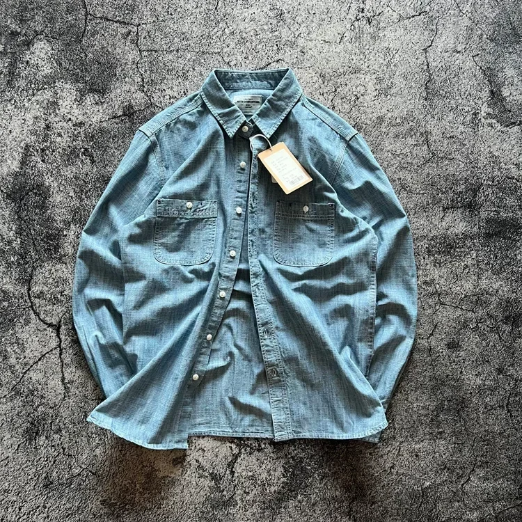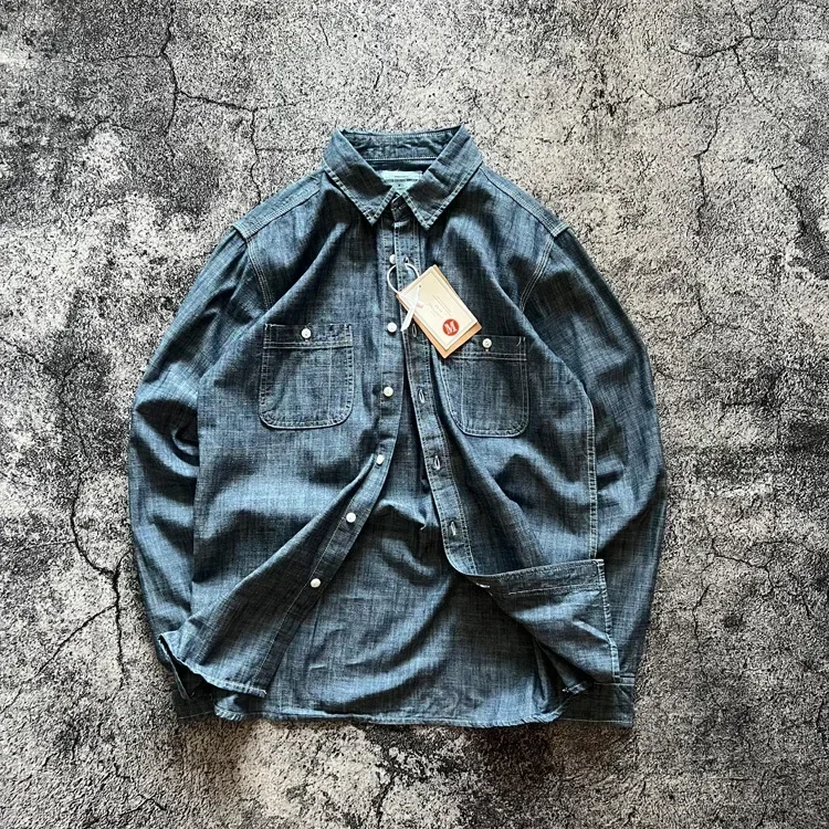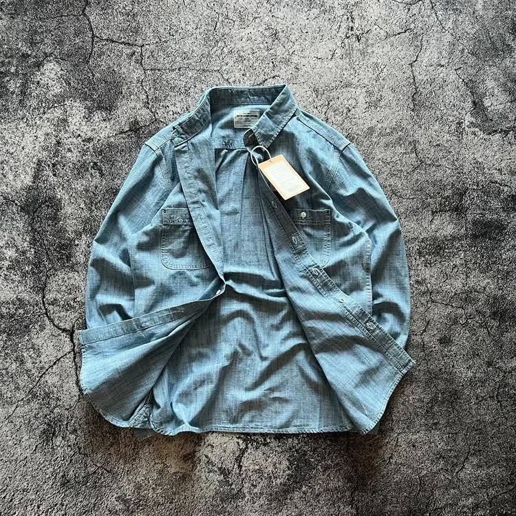 Japan Retro Bamboo Yarn Denim Casual Shirt Cool Hong Kong Style Long Sleeve Loose Spring Autumn 100% Cotton Washed Workwear Tops