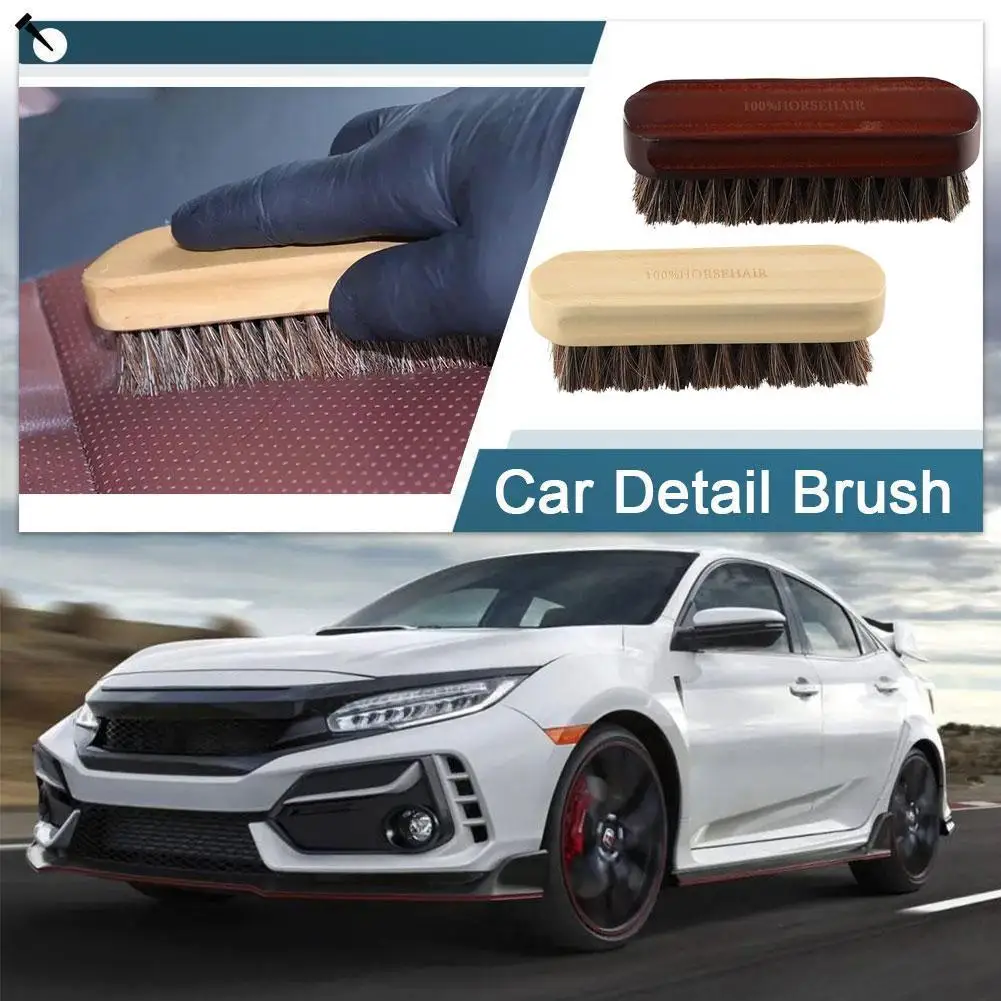 1/2Pcs Genuine Horsehair Wooden Brush For Car Detailing Polishing Brush Seat Handle Instrument Panel Roof Cleaning Tool
