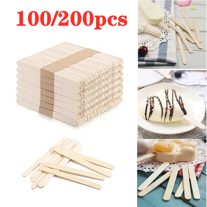 100/200pcs Natural Wooden Ice Cream Popsicle Sticks Wood Stick Ice Cream Spoon Hand Art Ice Cream Ice Cube Lollipop Cake Tools