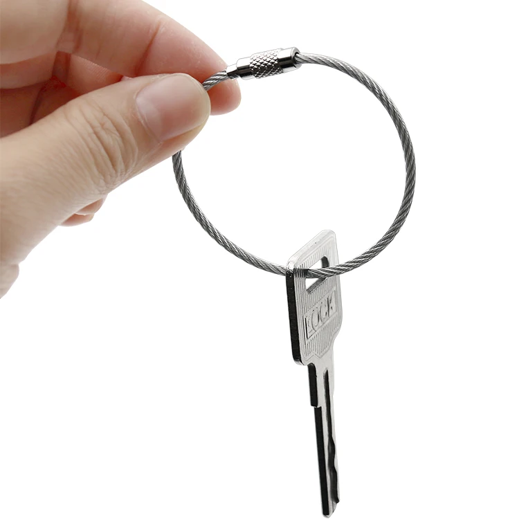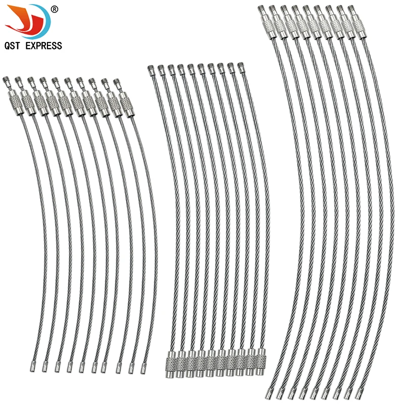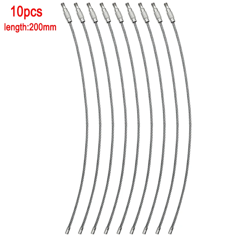 10Pcs 1.5-2mm EDC Keychain Tag Rope Stainless Steel Wire Cable Loop Screw Lock Gadget Ring Key Keyring Circle Camp Hanging Tool