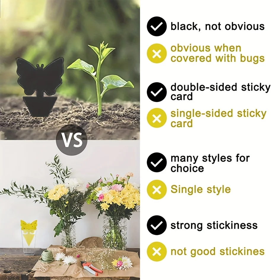 12/24Pcs Black Sticky Fly Trap Insect Traps Dual Sided Fly Catcher Plant Pest Control Strong Glue For Aphids Mosquitoes