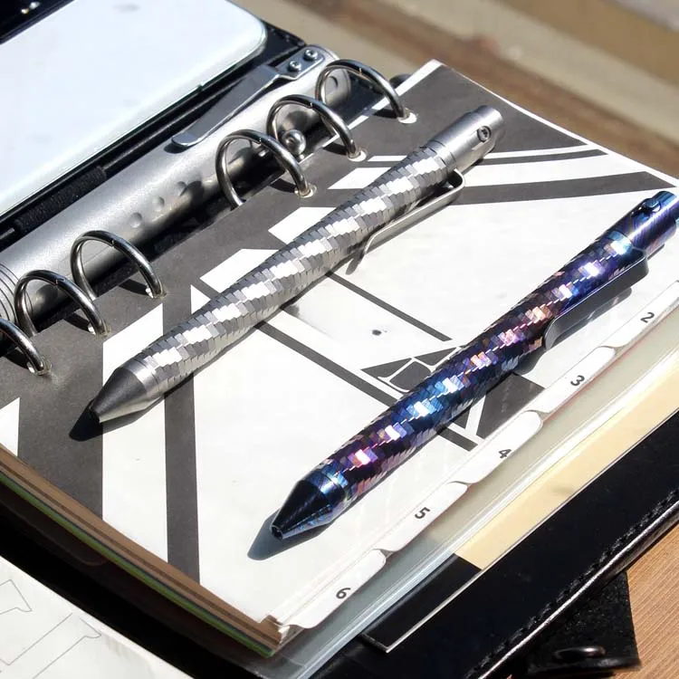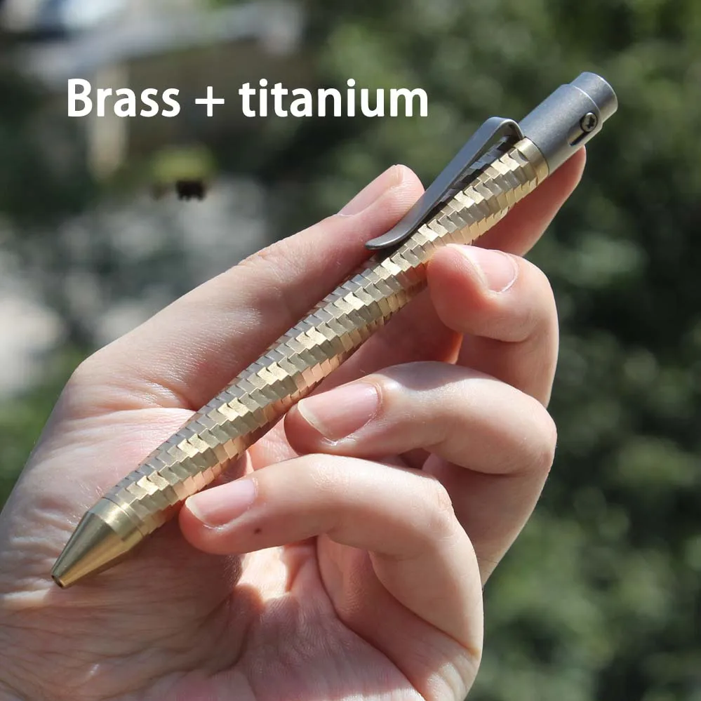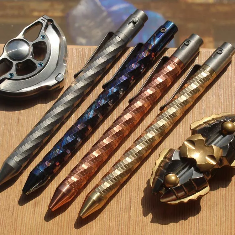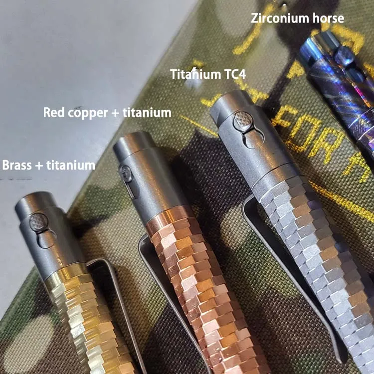 1PC EDC Pocket Tool Mosaic Titanium Alloy Signing Pen Brass Engraved Mechanical Pen G2 Ballpoint Pen
