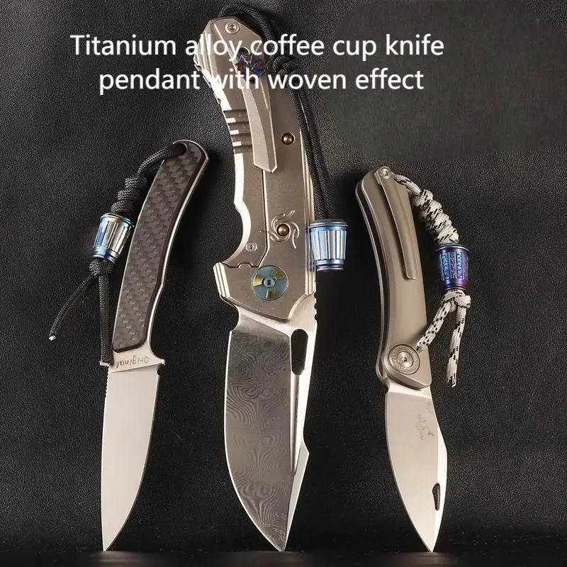 1PC EDC Pocket Tool Titanium Coffee Cup Knife Beads DIY Paracord Beads Folding Knife Hanging Beads Bracelet Beads