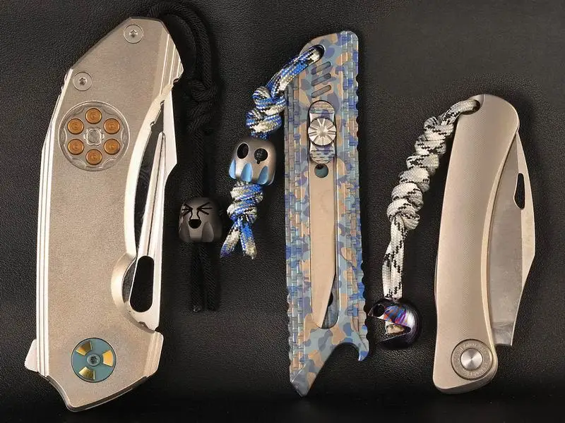 1PC Titanium game character knife bead EDC pocket tool DIY Paracord bead folding knife hanging bead
