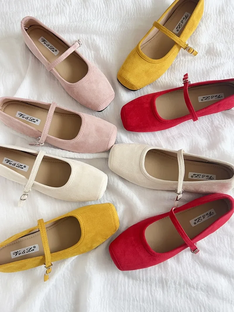 2025 New Women Flat Fashion Velvet Ladies Eelgangt Mary Jane Shoes Square Toe Shallow Slip On Ballerinas Shoes Soft Ballet