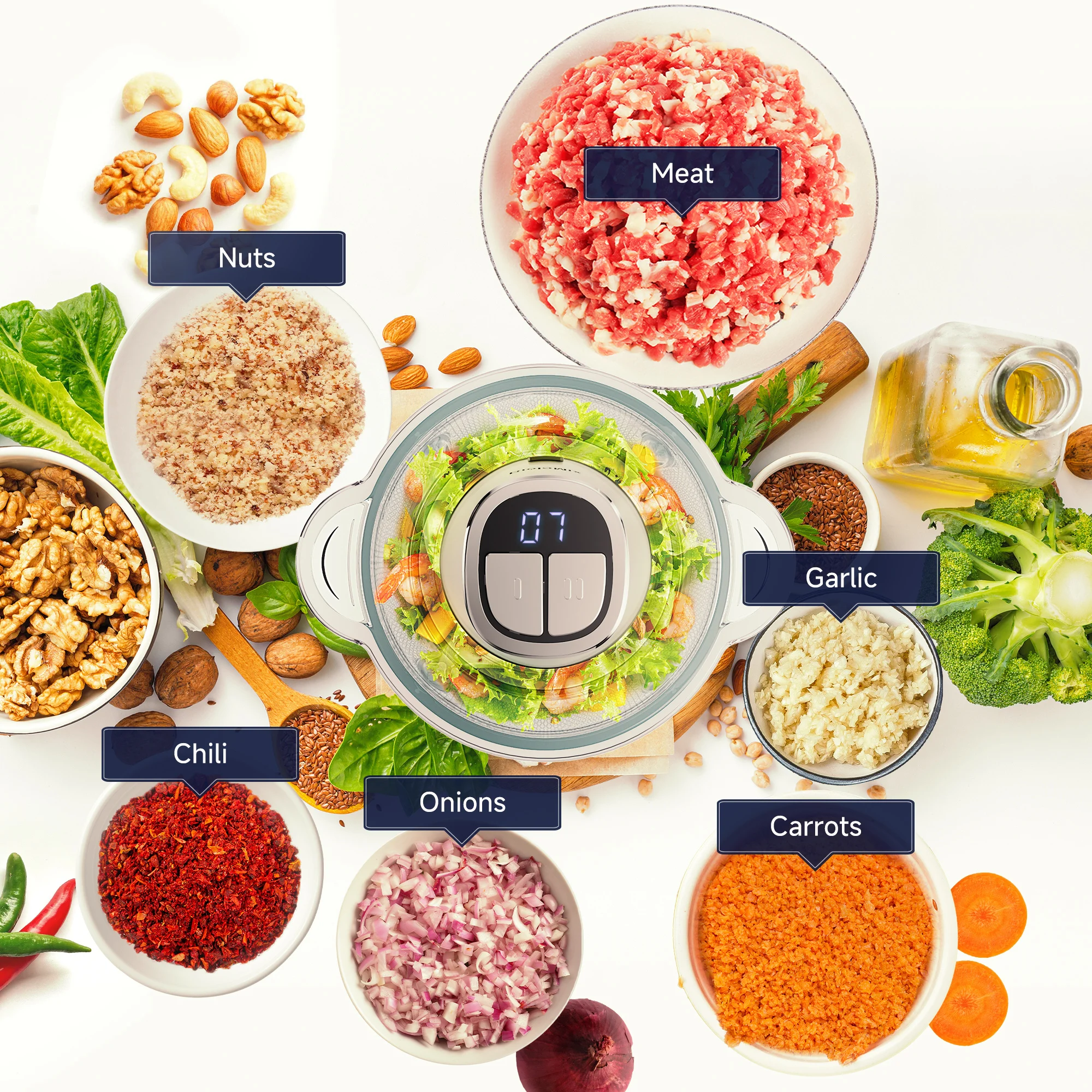 Gear I for soft foods, Gear II for hard/crispy ingredients. Perfect for meat, veggies, nuts, and more.