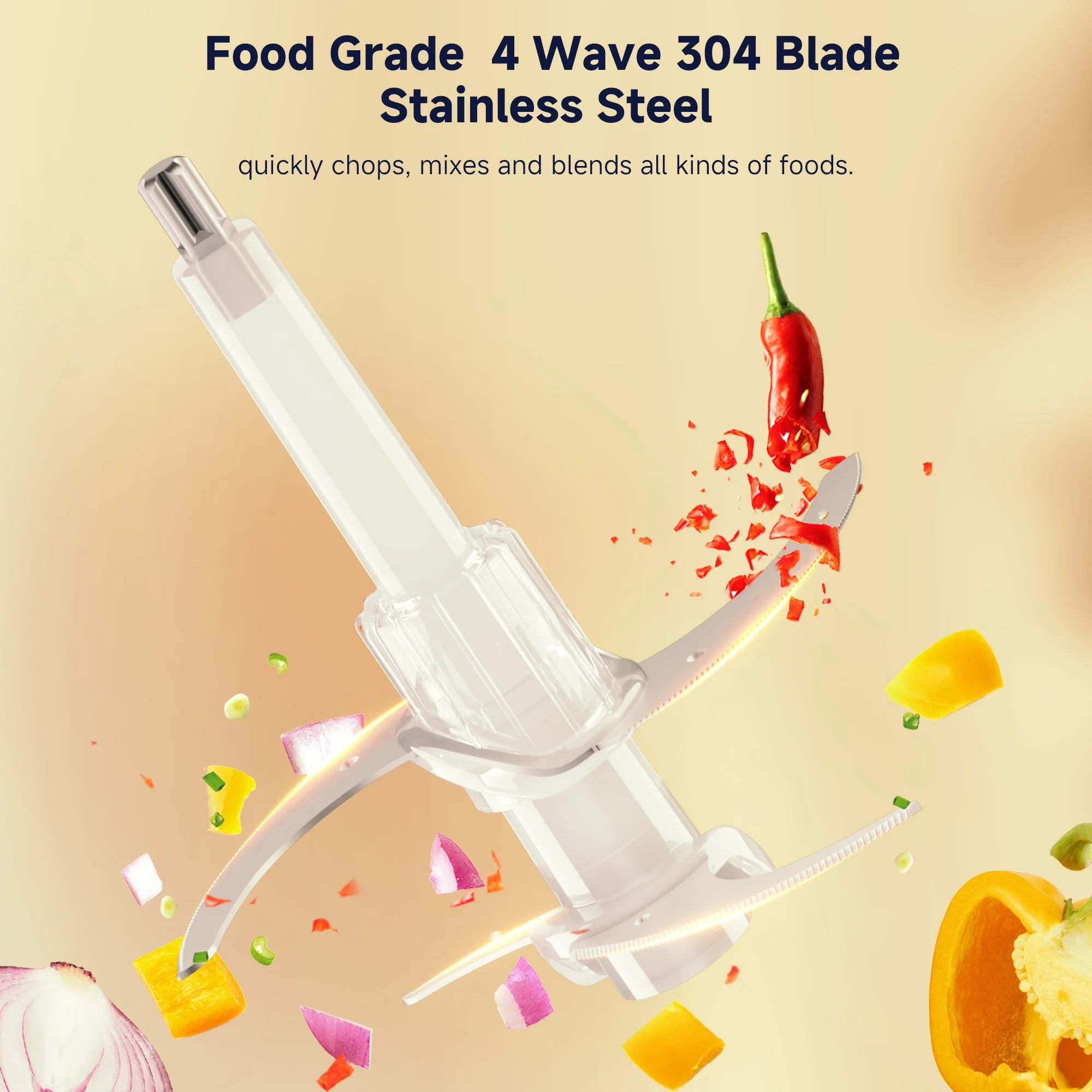With a 300W powerful motor and uniquely-sharp stainless steel 4 bi-level blades, you can easily crush, mince, and puree with precise control.High-performance motor delivers optimal grinding in just 20 seconds. Avoid continuous use beyond 30 seconds per cycle.