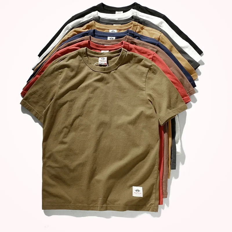 31100# Summer New Men's Fashion Simple Short-sleeved O-neck Solid Color T-shirt 100% Cotton Washed Old Bottoming Slim T Shirt