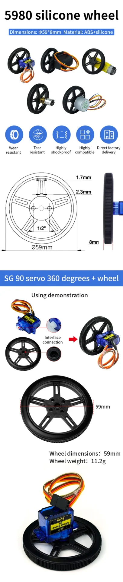 5908 Silicone Tire Wheel Compatible Robot Smart Car With 360-degree SG90 MG996R SG5010 Servo N20 TT Motor For Arduino Projecst