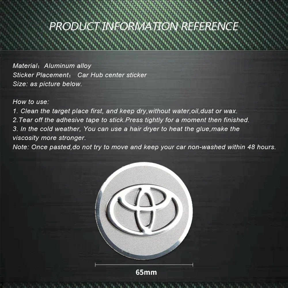 65mm Car Wheel Center Hub Caps Sticker for Camry Highlander Corolla Rav4 Tundra Crown Land Cruiser Tacoma Accessories