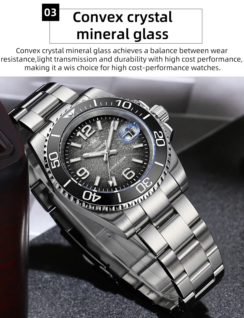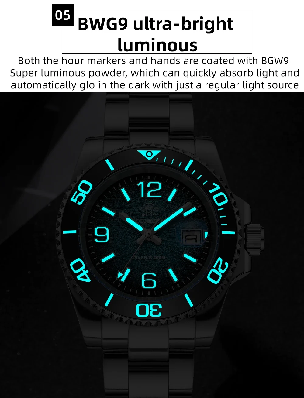Luminous bezel: BGW9 super luminous powder emits blue light