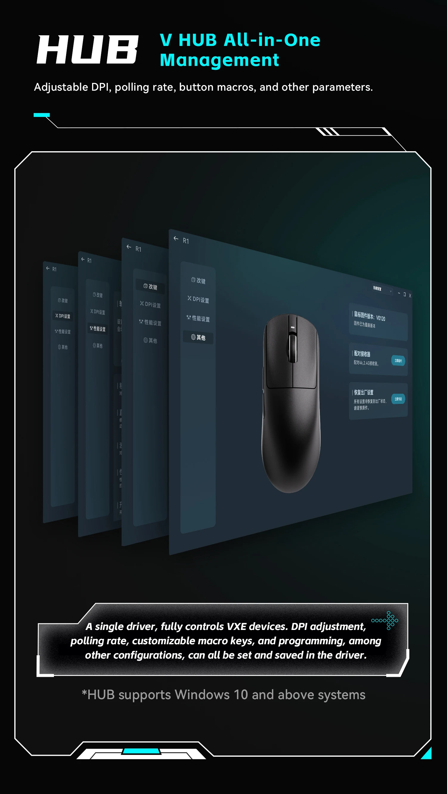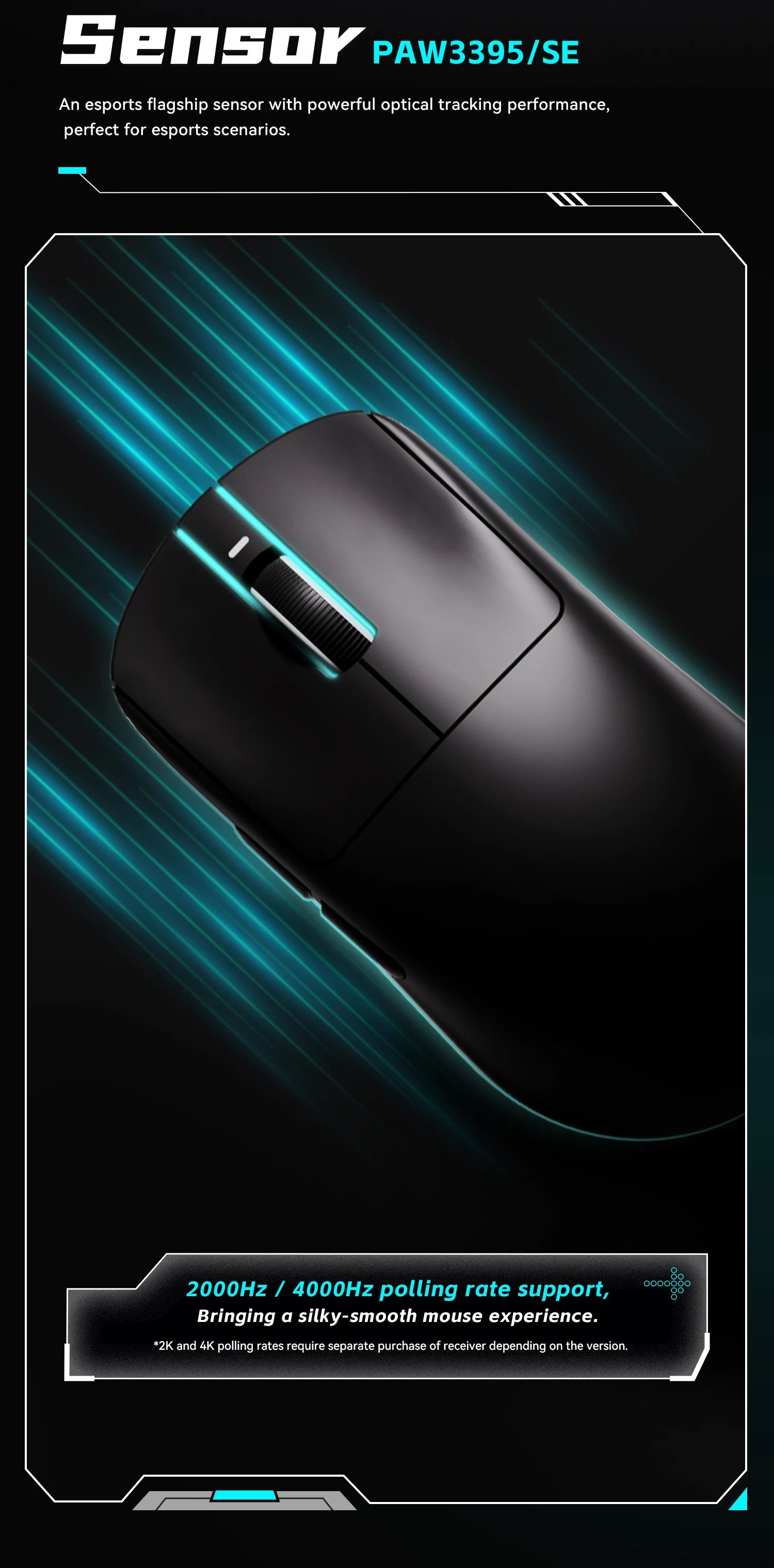 • Sensor model: Pixart 3395 (26000 DPI|650 IPS|50G)