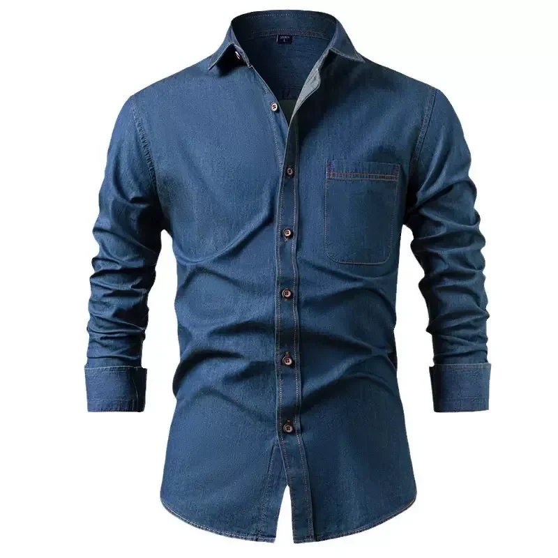 Autumn and Spring New Fashion Trend Retro Sports Solid Color Denim Shirt Men’s Loose Comfortable Plus Size High Quality Shirt