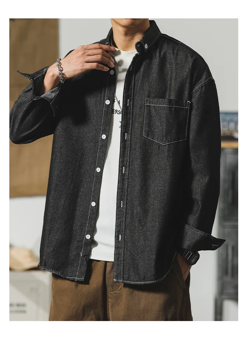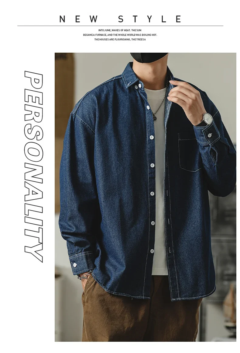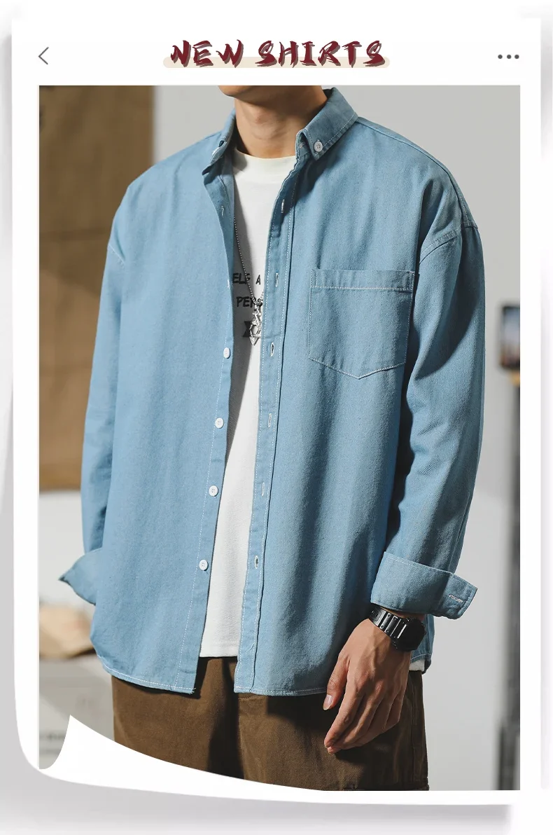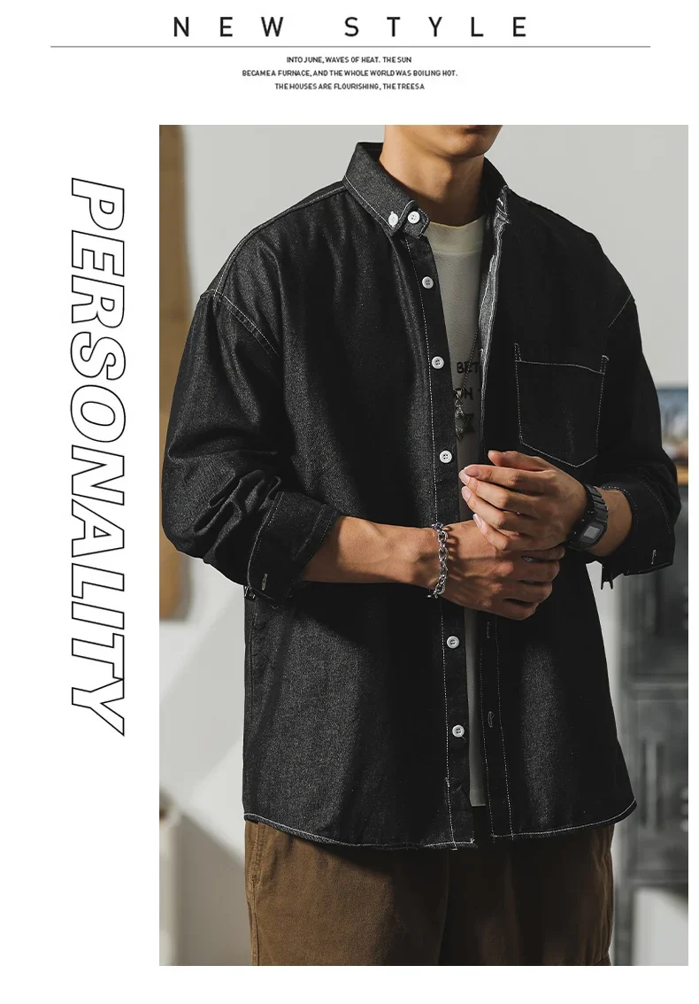 Autumn New Men’s Long Sleeve Denim Shirt Classic Black Blue Loose Lapel Collar Coats Fashion Korean High Street Male Clothes Top