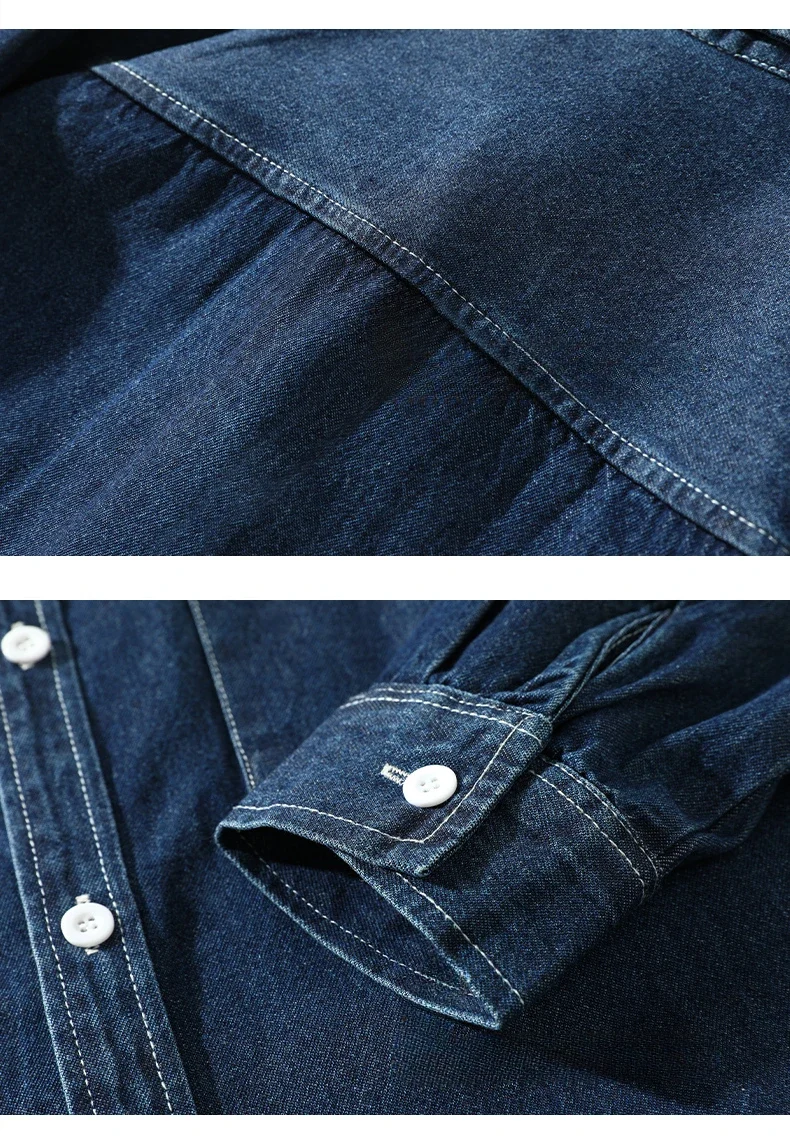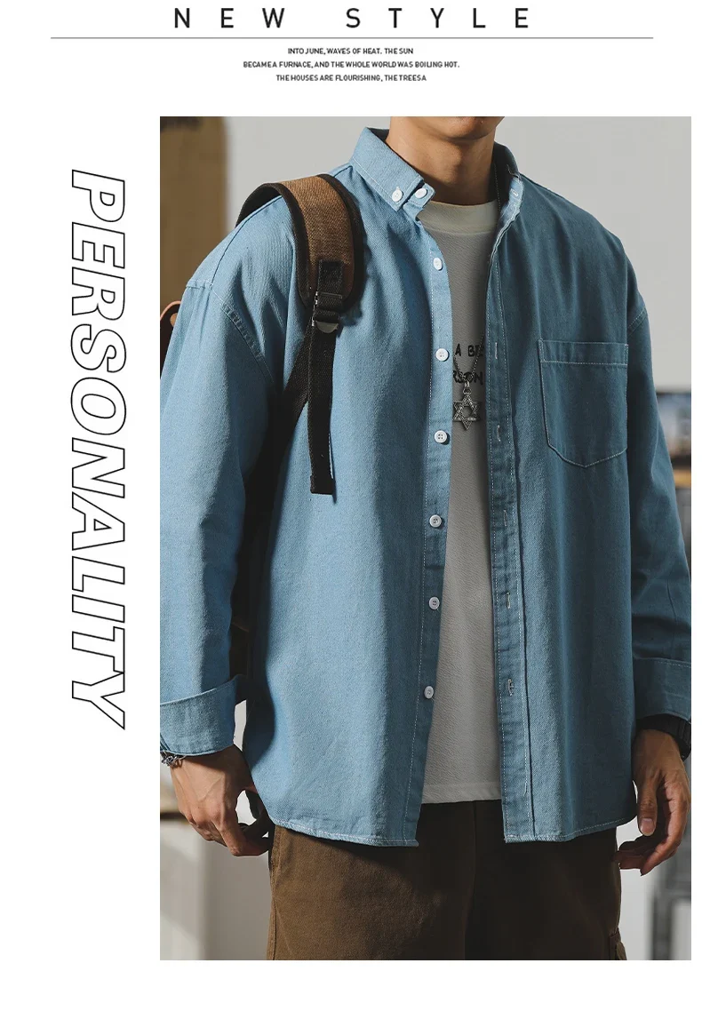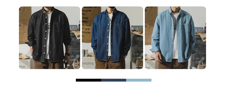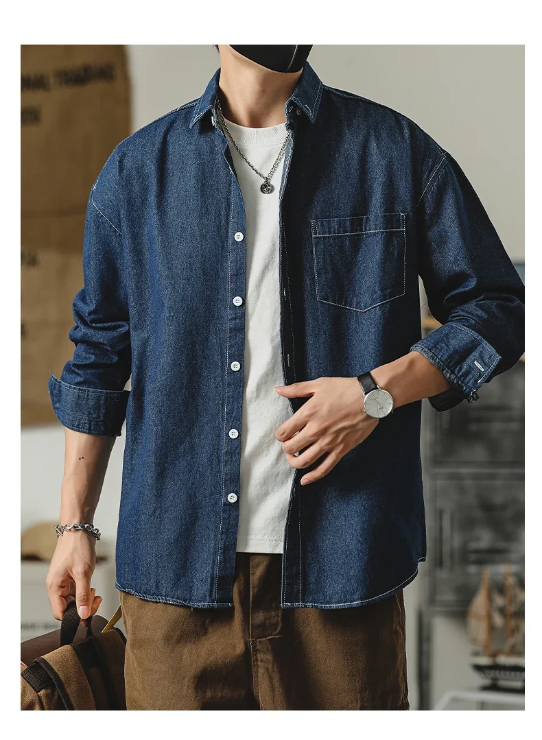 Autumn New Men’s Long Sleeve Denim Shirt Classic Black Blue Loose Lapel Collar Coats Fashion Korean High Street Male Clothes Top