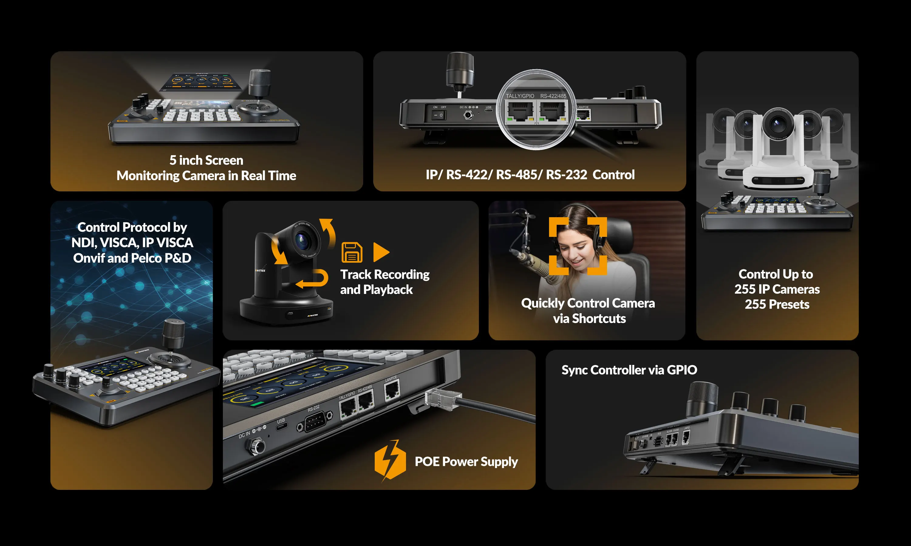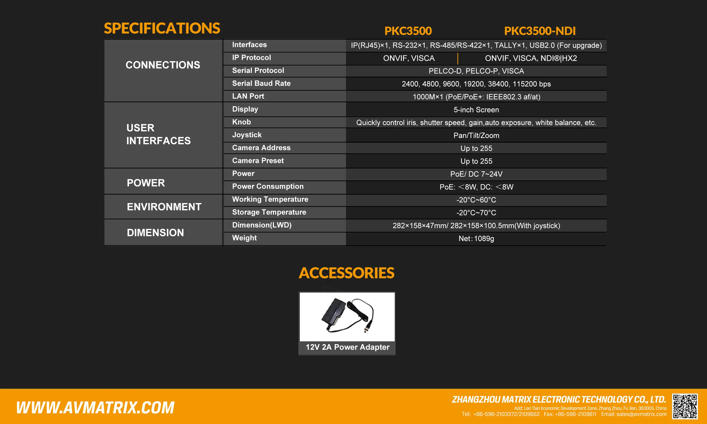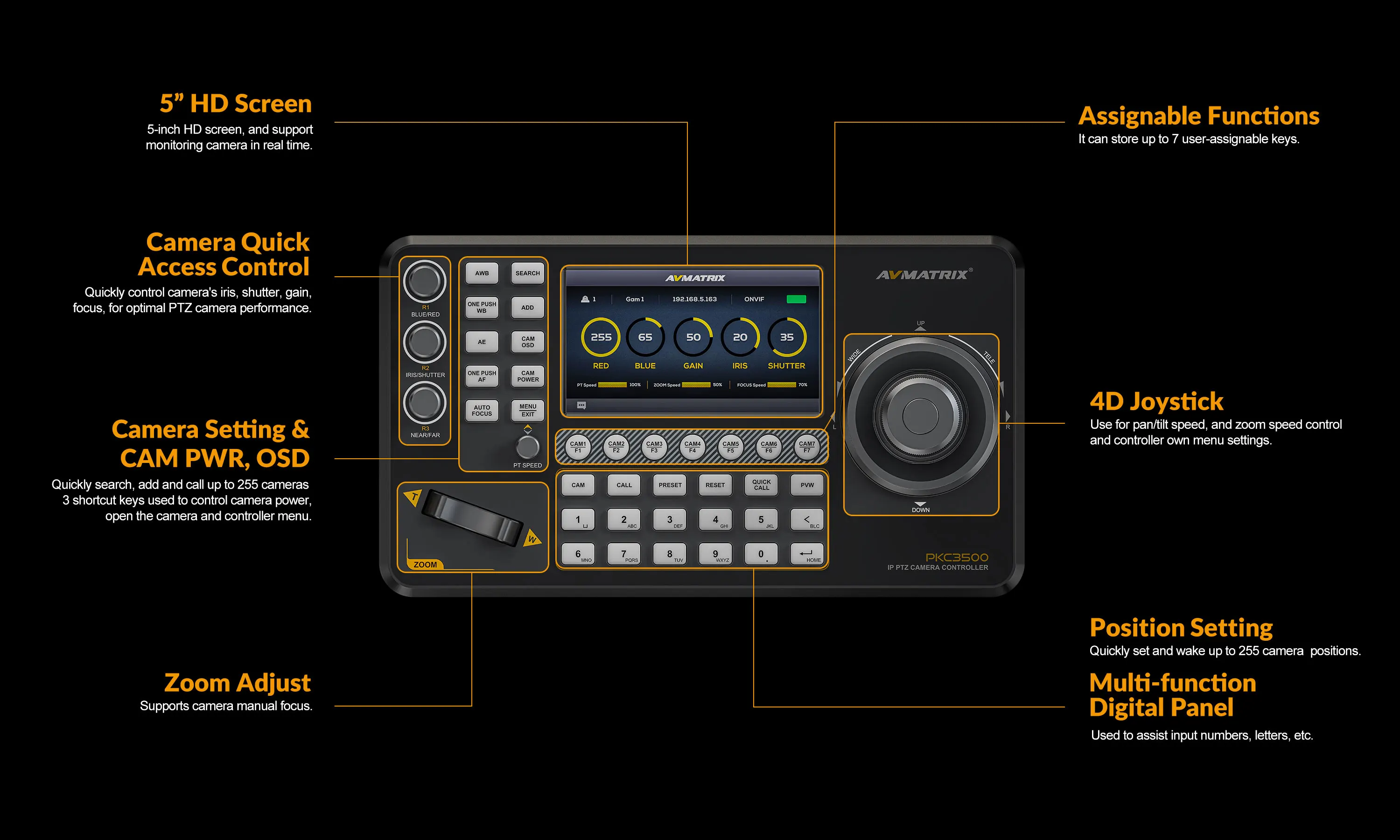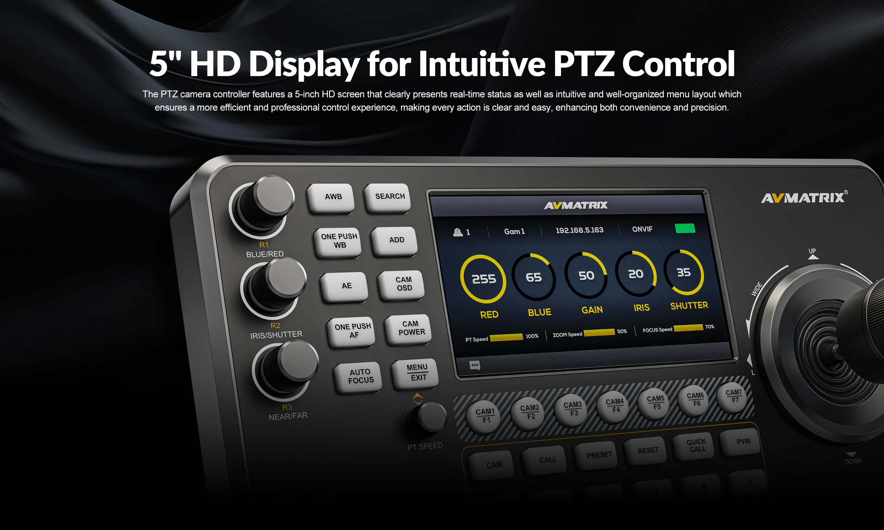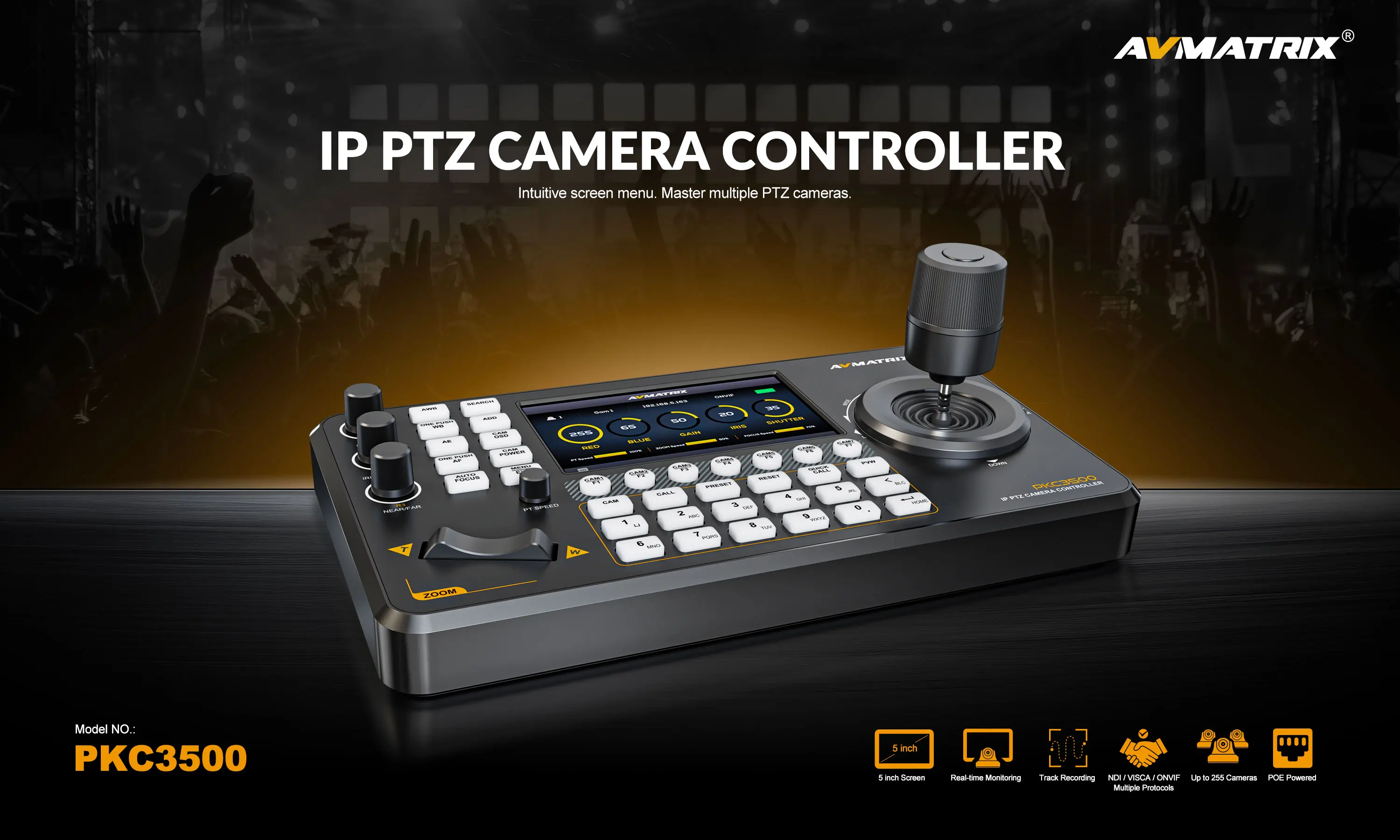 AVMATRIX PKC3500 IP PTZ CAMERA CONTROLLER 5″ HD Display for Intuitive PTZ Control Optional NDI vs PKC3000 PKC4000