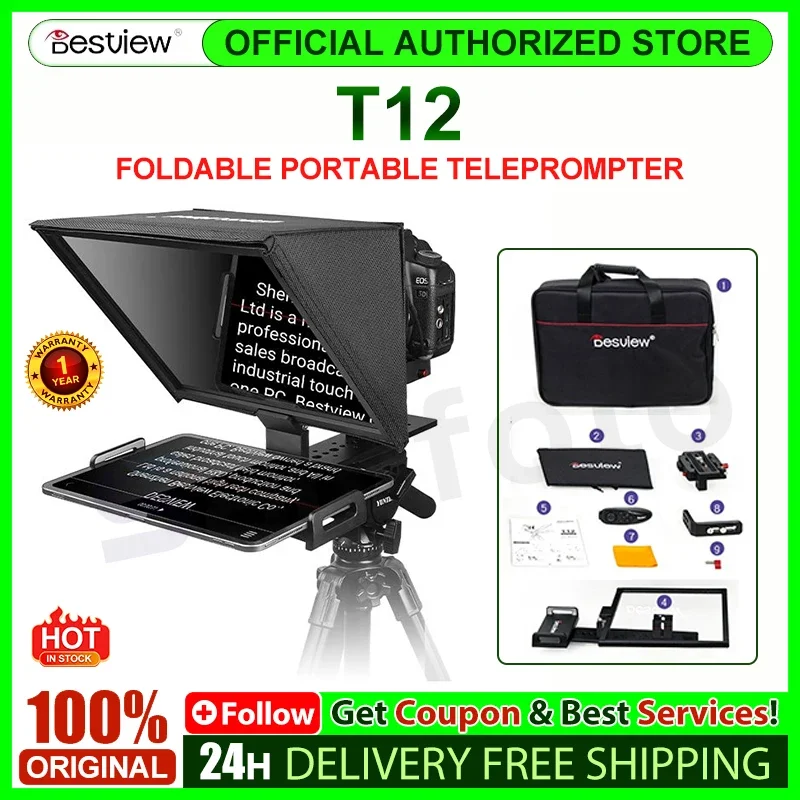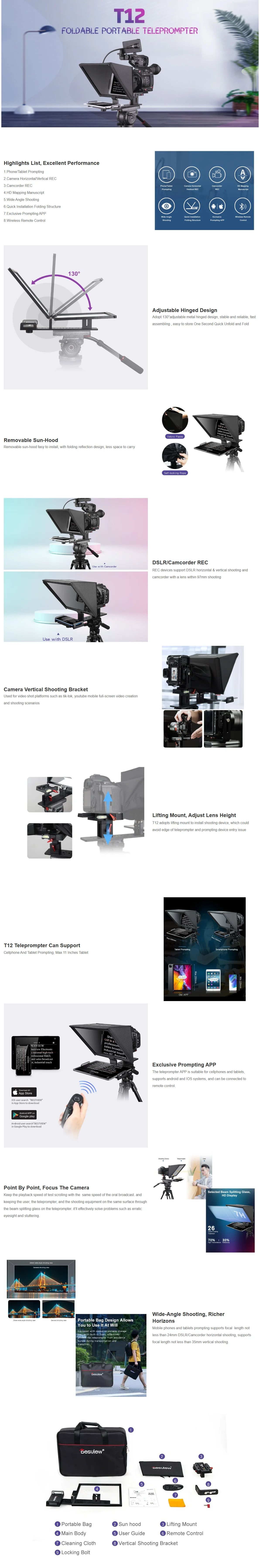 Bestview Desview T12 FOLDABLE PORTABLE TELEPROMPTER Wireless Remote Control Wide Angle Shooting