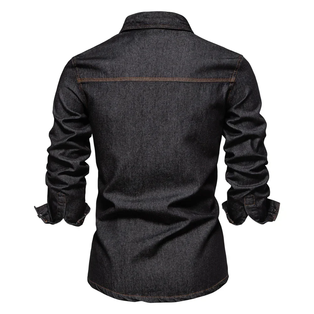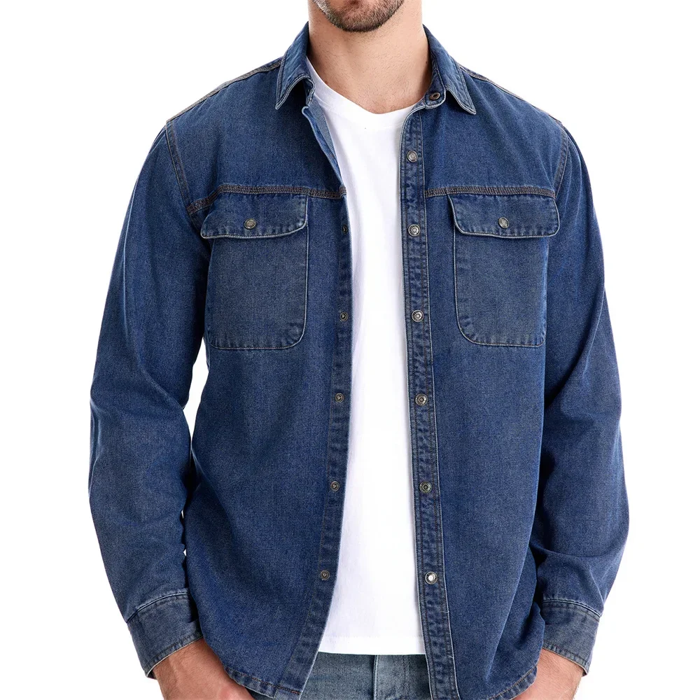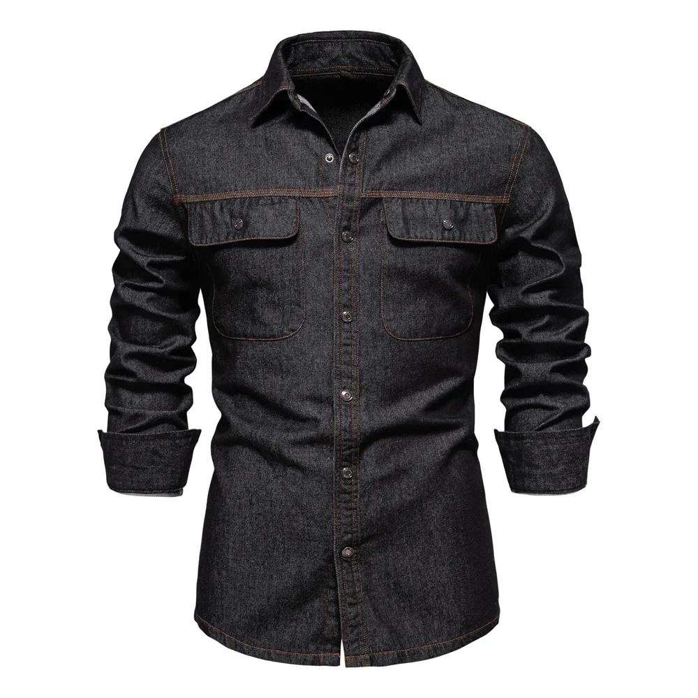 Brand New Mens 100% Cotton Denim Shirts Double Pocket Casual Cowboy Mens Shirts Long Sleeve Autumn Jeans Shirts for Men