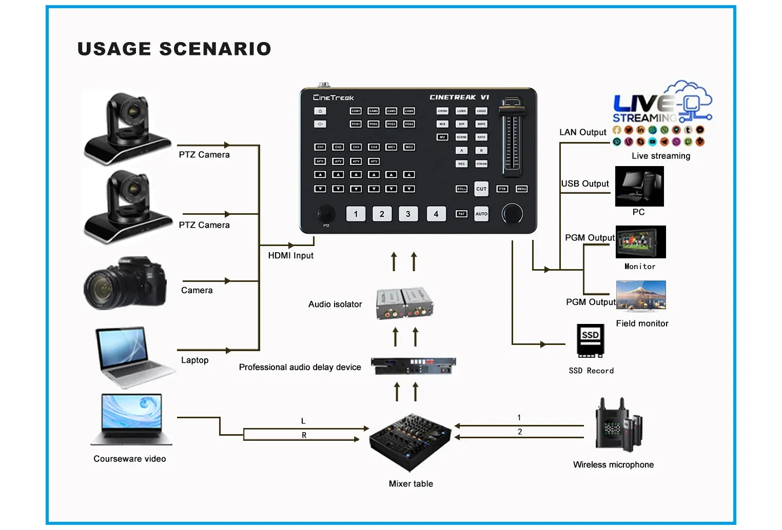 Cinelive V1 4-Channel HDMI Streaming Video Switcher