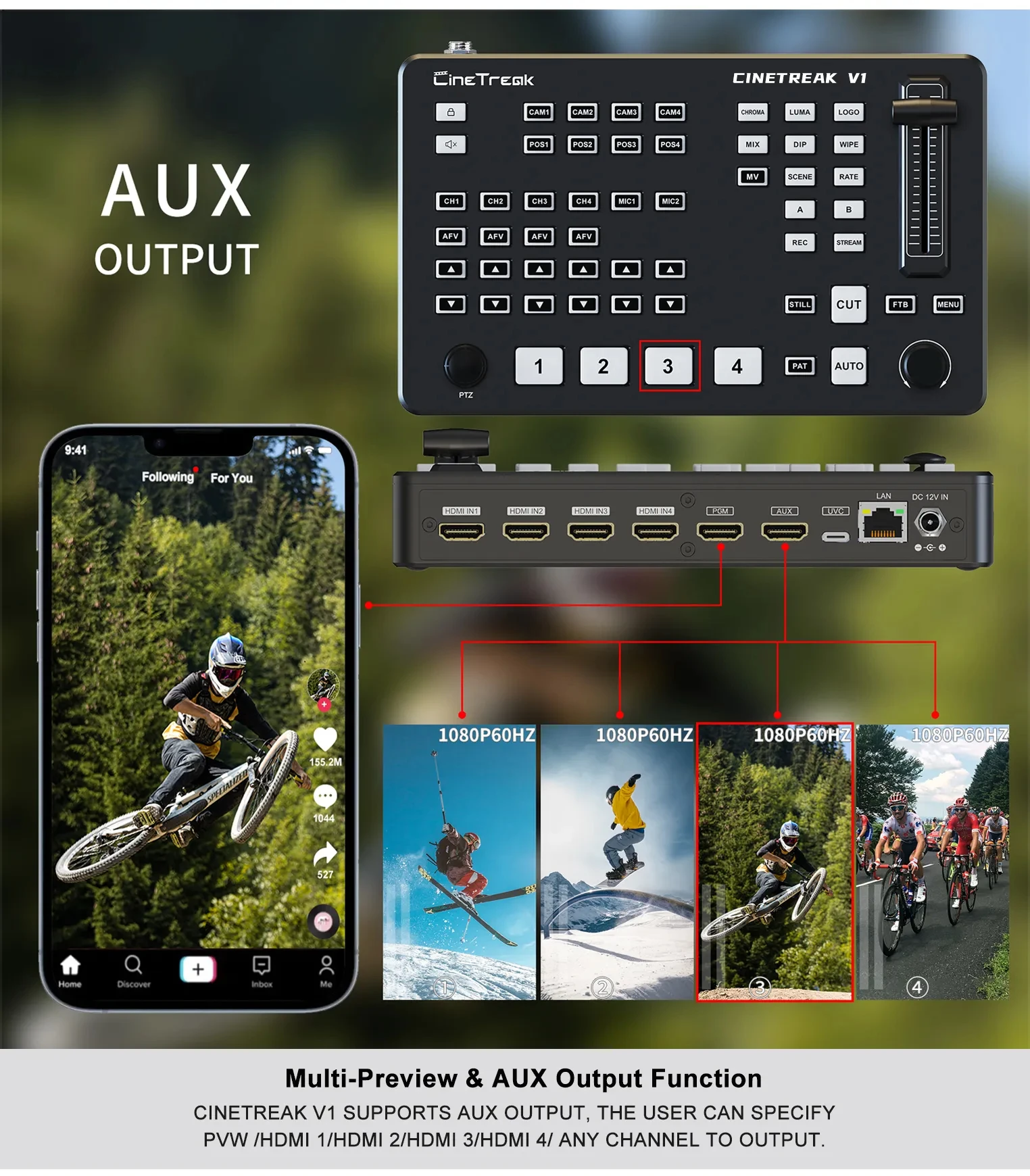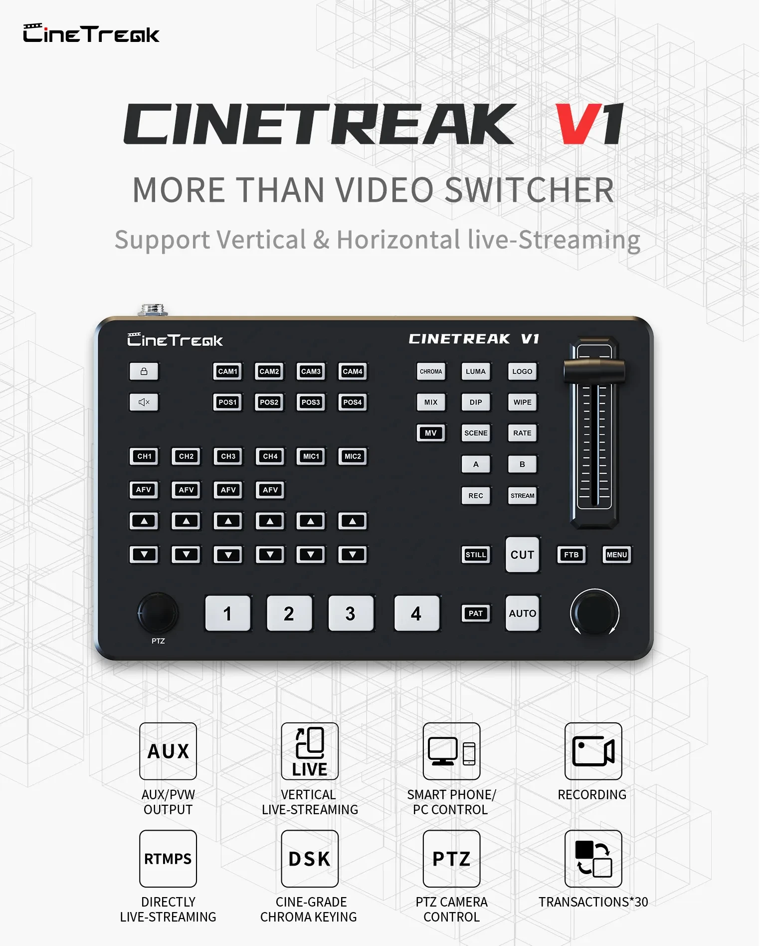 Cinetreak Cinelive V1 Video Mixer Swithcer FHD 4-CH HDMI-compatible for Live Stresming Switcher ·Multi-view Recording