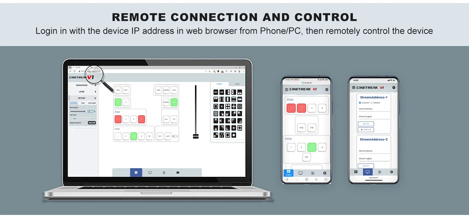 Control via a web interface on your PC or phone without requiring any additional installation.