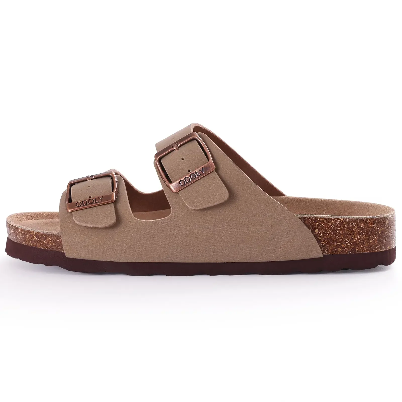 Crestar Classic Women’s Cork Slippers Fashion Double Buckle Outdoor Beach Sandal Cork Footbed Leather Sandals Unisex Clogs Shoes