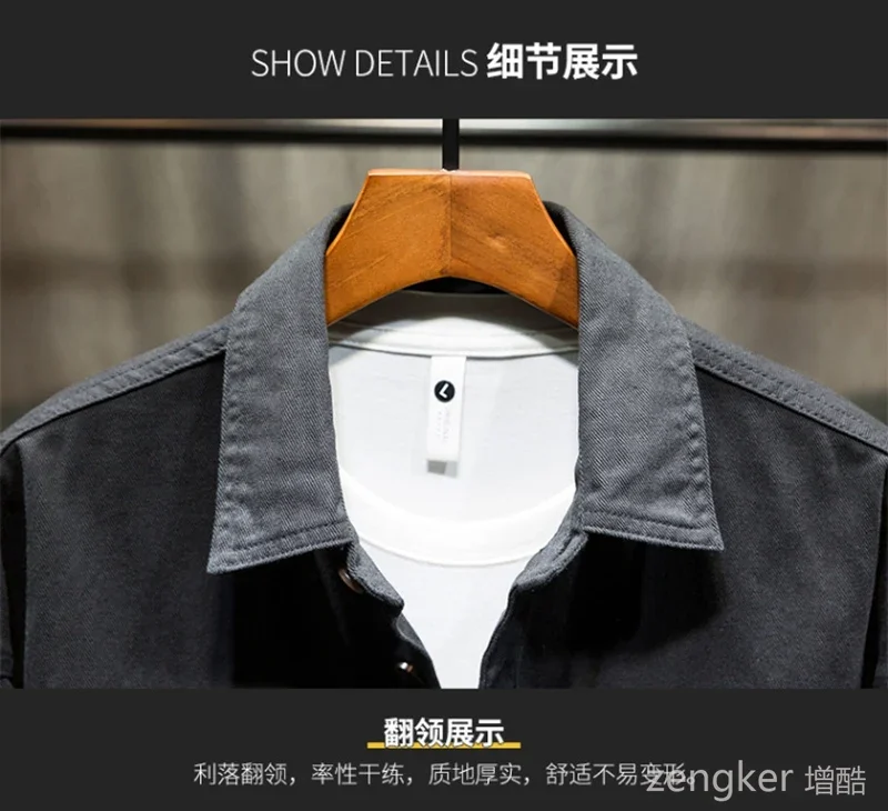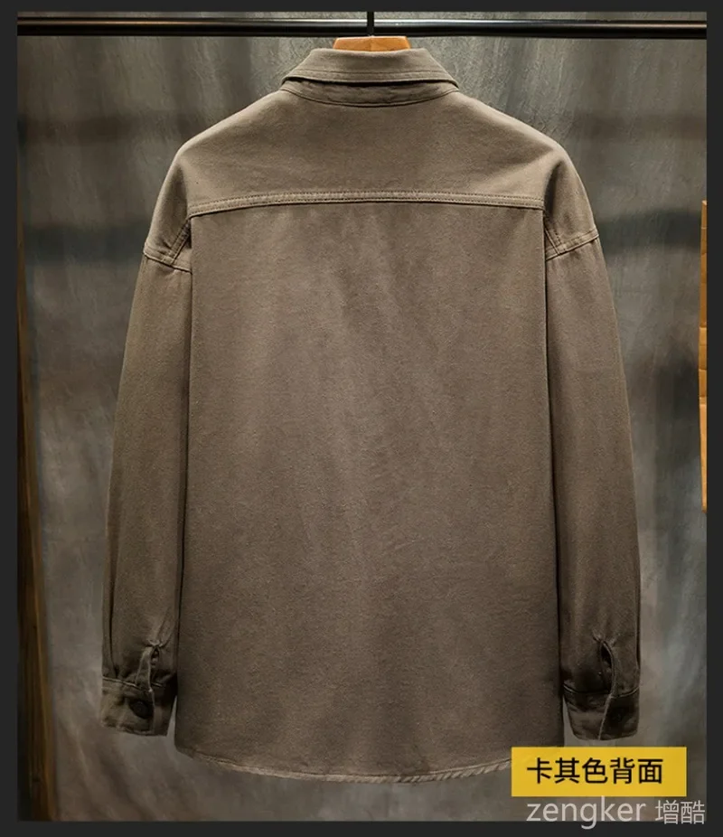 Denim shirt jacket men’s spring and autumn Japanese tide brand retro loose plus size long-sleeved casual 7xl shirts for men