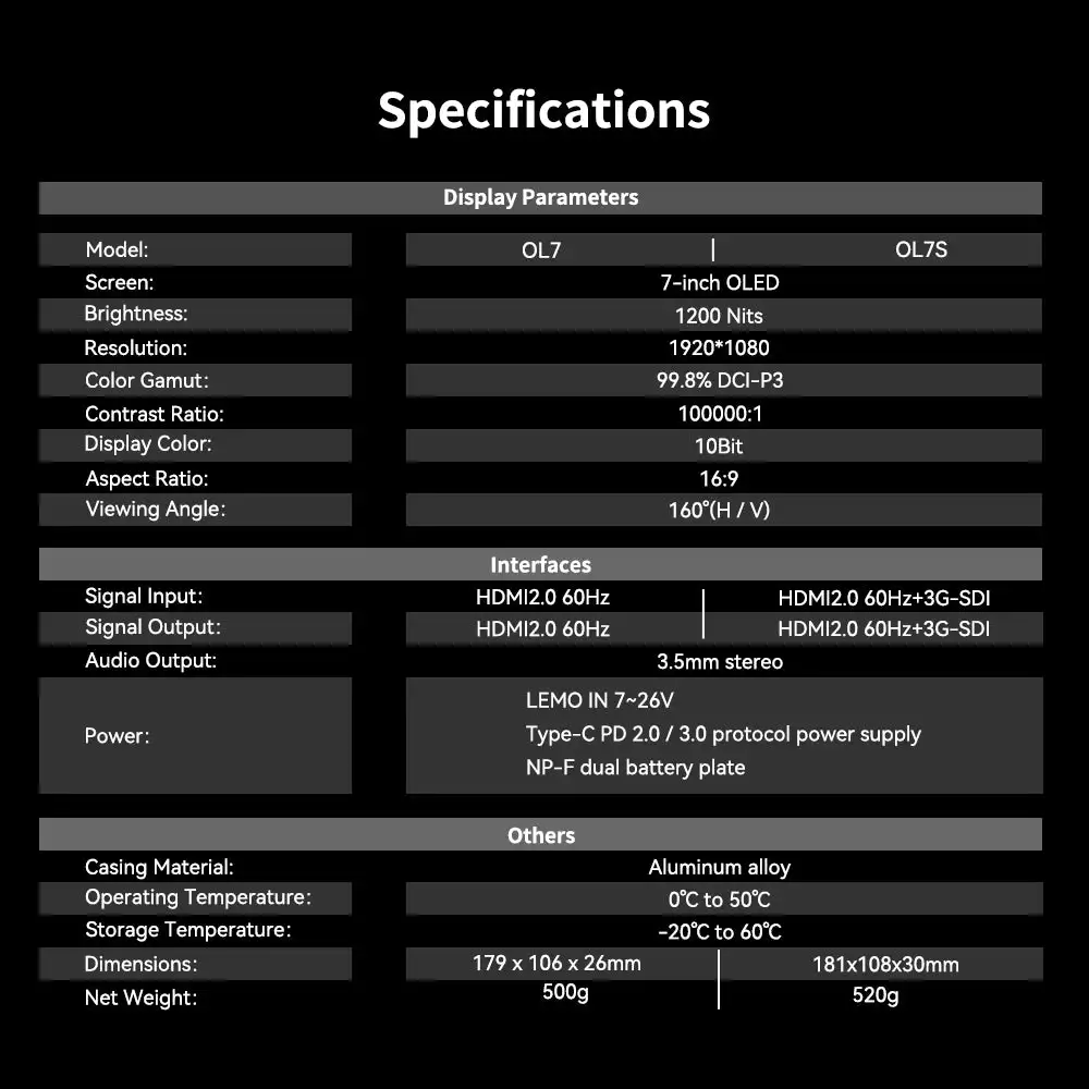 Desview OL7/OL7S OLED Monitor 1200Nits 7-inch HD2.0 60Hz Input/Output 4K60 Touch Screen∵Monitor
