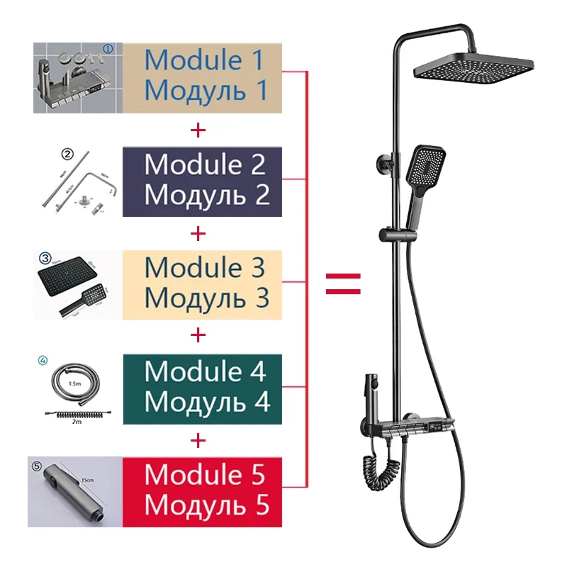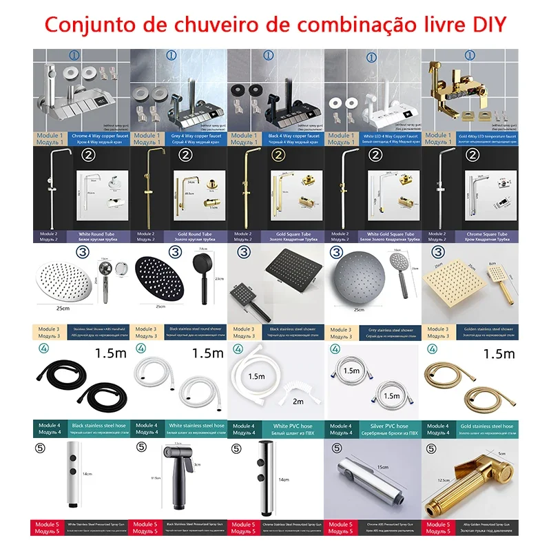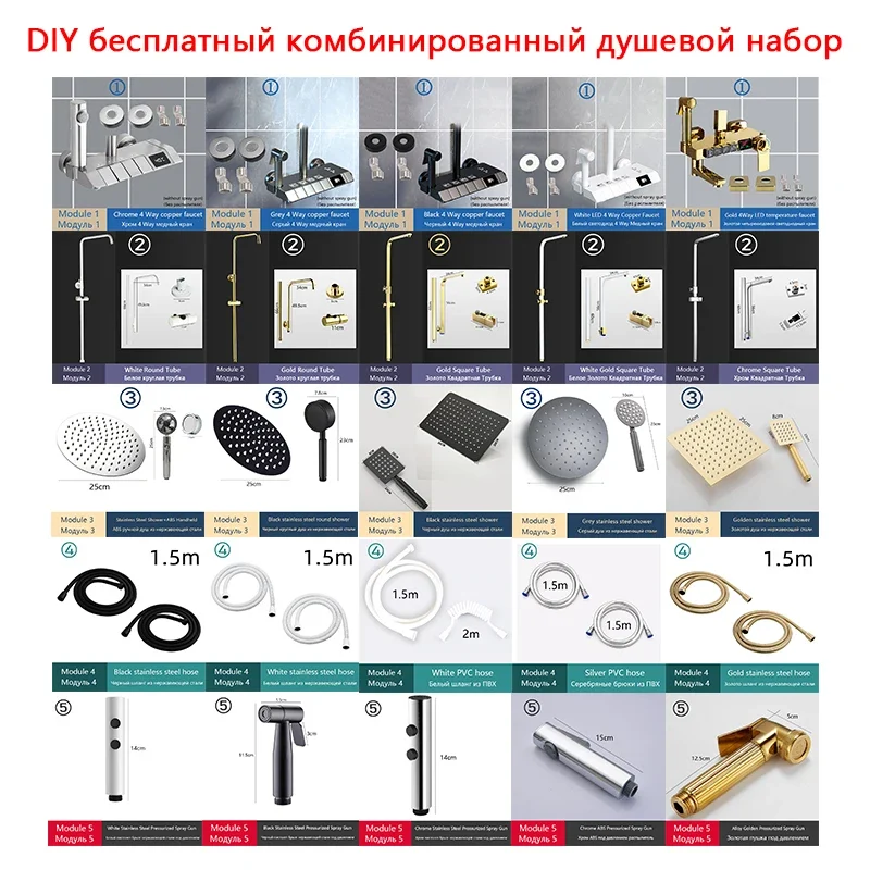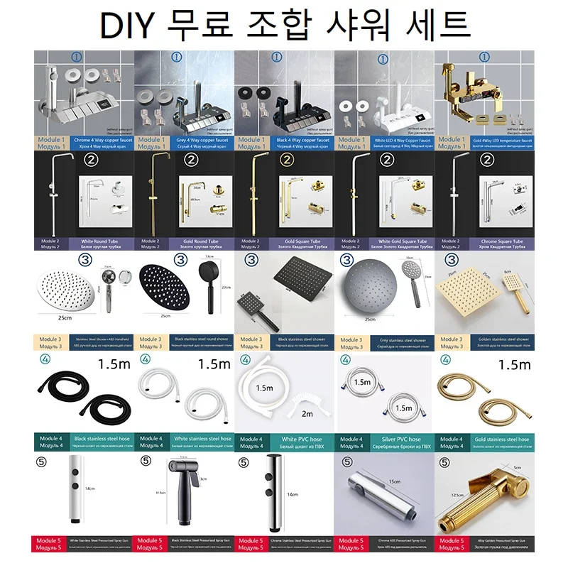 الميزات: تتكون مجموعة الدش من 5 وحدات.قم بشراء 5 وحدات لتجميع مجموعة الدش، وهو أمر لا غنى عنه.يمكن مطابقة مجموعة الدش المجانية DIY بحرية وفقًا لتفضيلاتك.يمكن دمج ملحقات الوحدة العالمية بحرية.