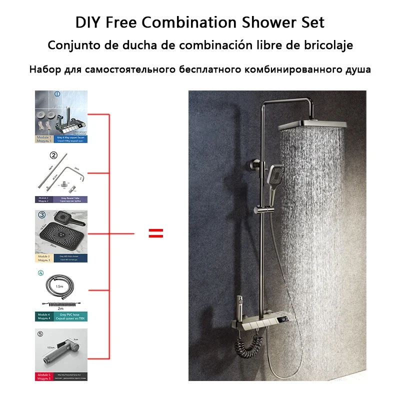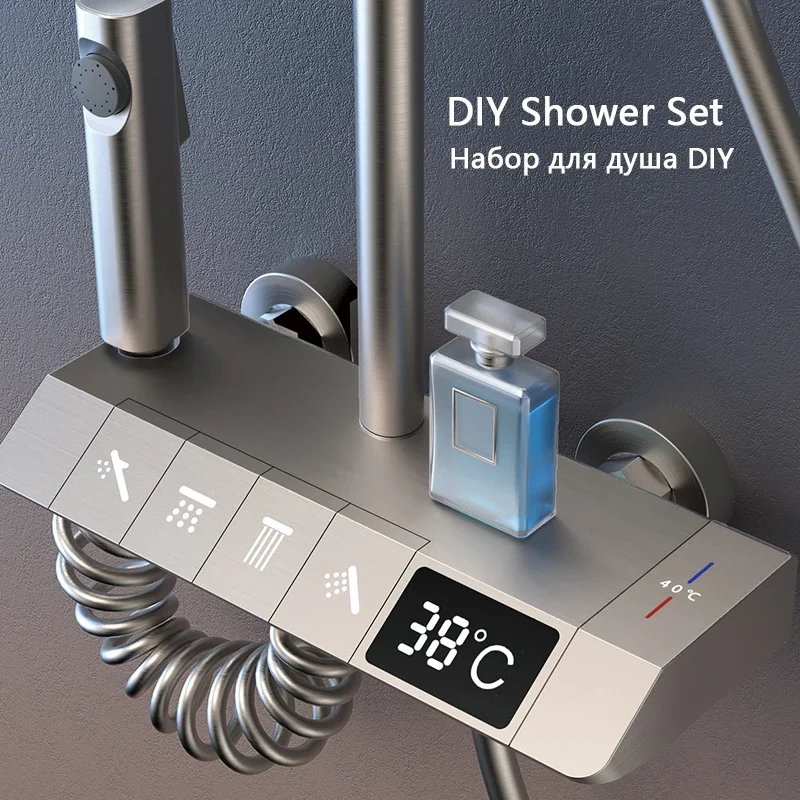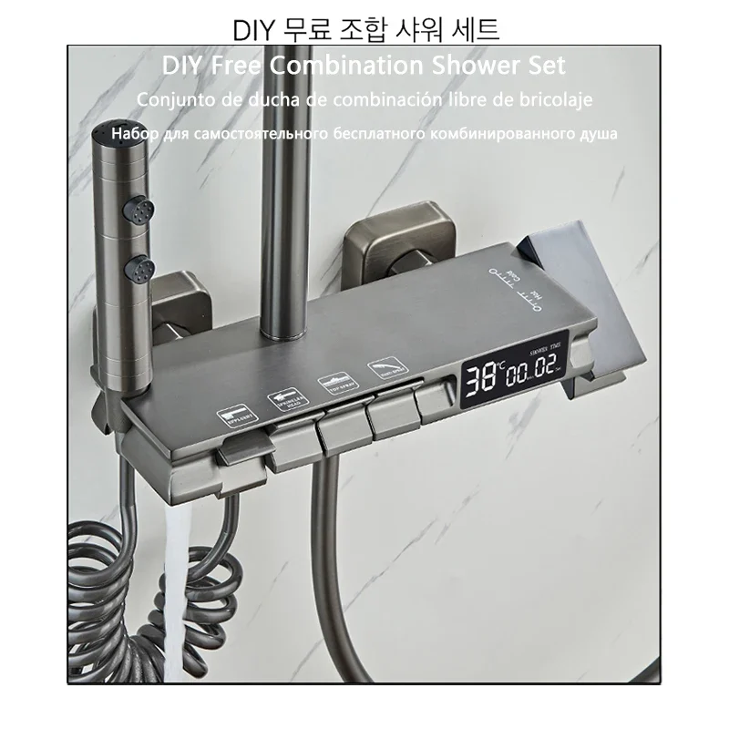 DIY بها بنفسك دش مجموعة نظام دش الحمام الحائط حوض الاستحمام دش صنبور رمادي أسود ذهبي أبيض الرقمية LED درجة الحرارة دش