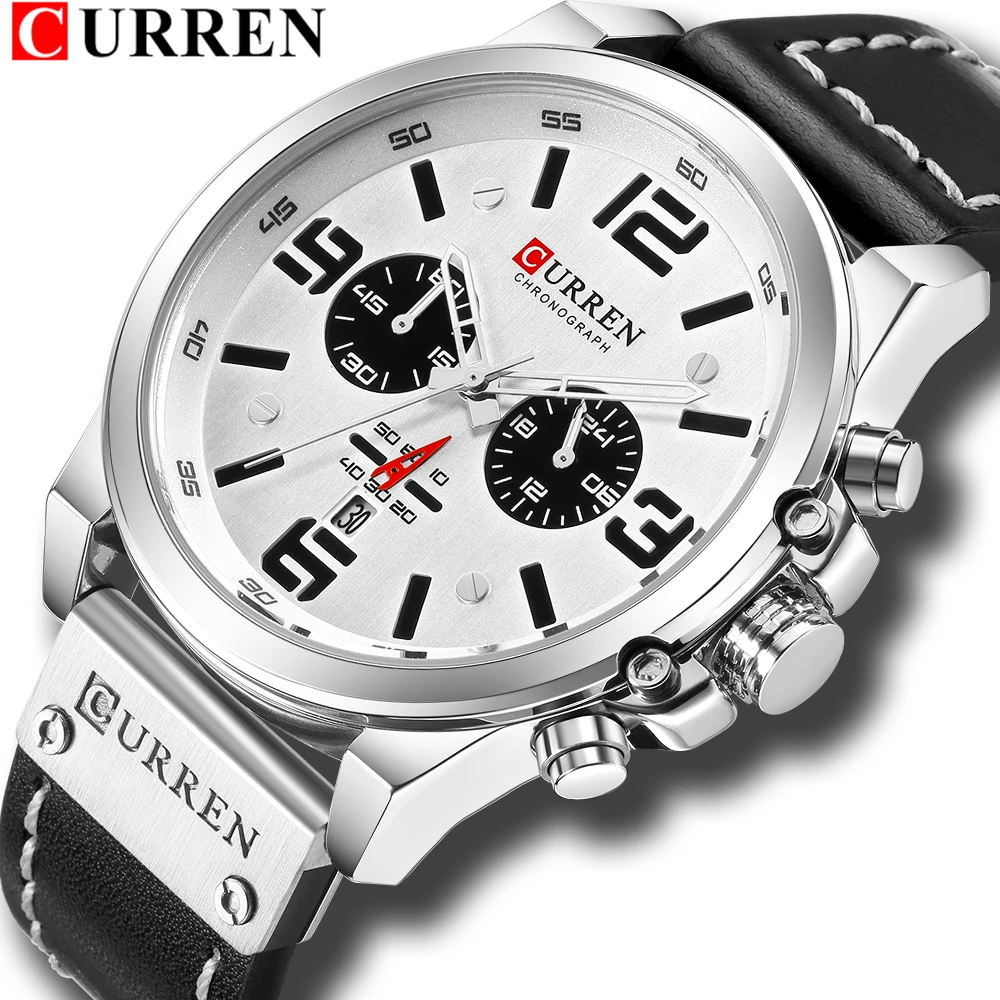 Fashion Classic Black White Chronograph Watch Men CURREN Men’s Watches Casual Quartz Wristwatch Male Clock Reloj Hombre