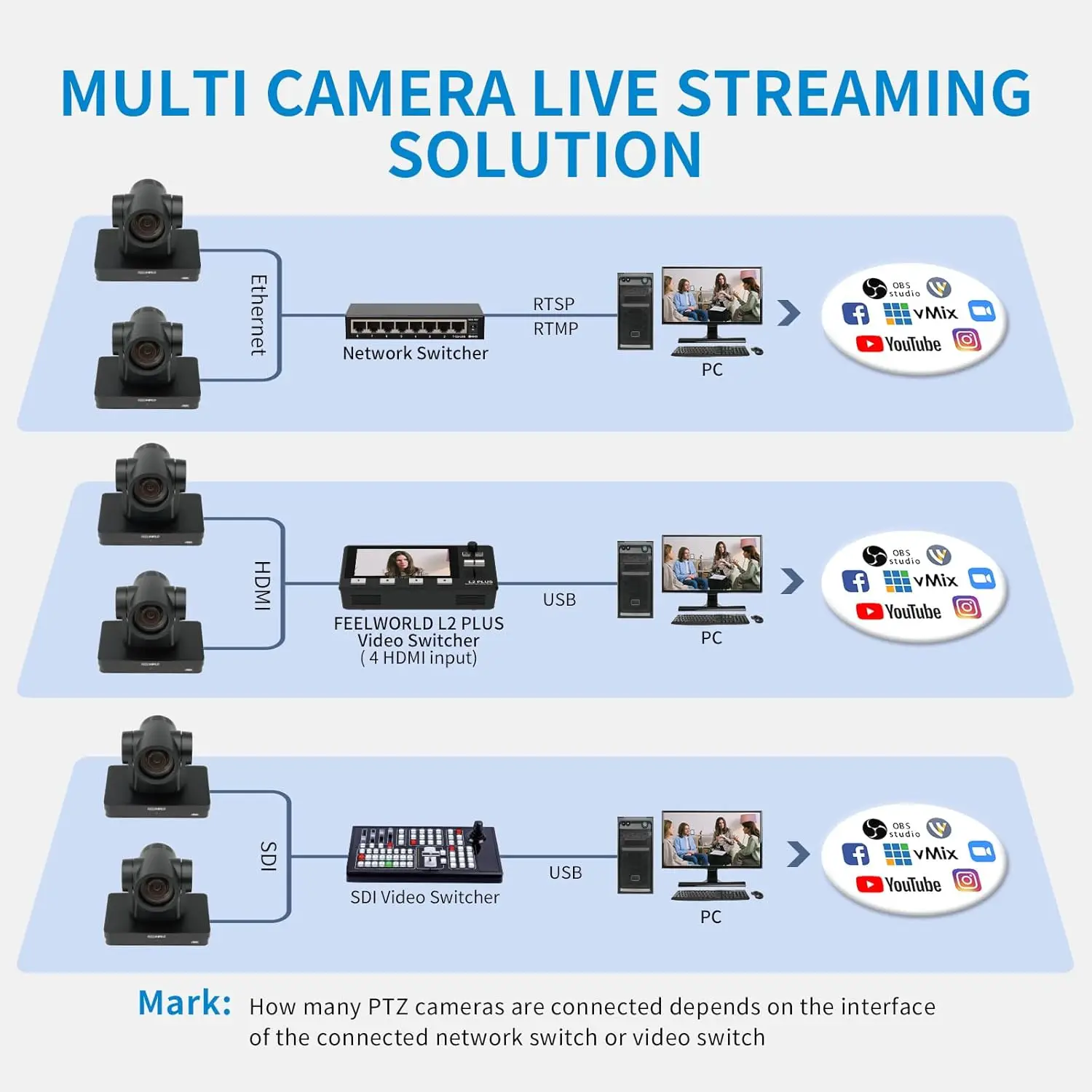 • 【Multiple Video Outputs】Network output supports 4K signal format. Simultaneous HDMI, 3G-SDI, USB3.0and IP streaming video output and multiple network protocol, stream to your favorite platforms.