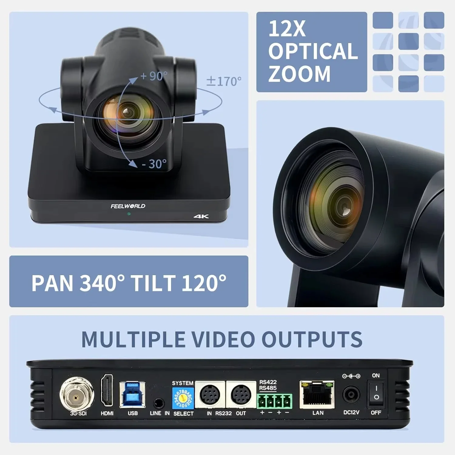 FEELWORLD UHD4K12X PTZ Camera SDI HDMI USB IP 12X Optical Zoom 4K 30FPS For Video Conference Broadcast Live Streaming Education
