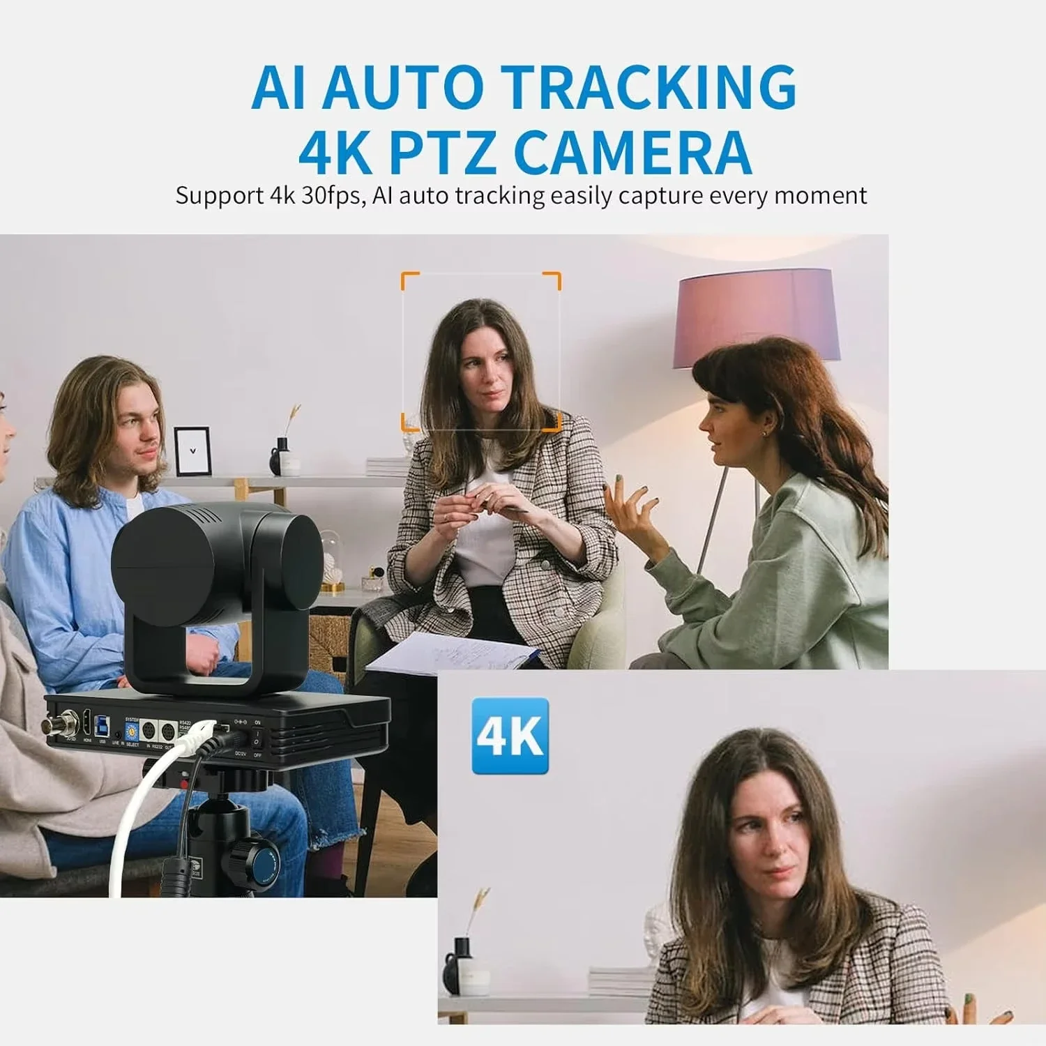 • 【AI Auto Tracking】Has real-time tracking and zone tracking function, easily capture every moment. Auto focus, take close-ups on characters, details, smart frame capture everyone.
